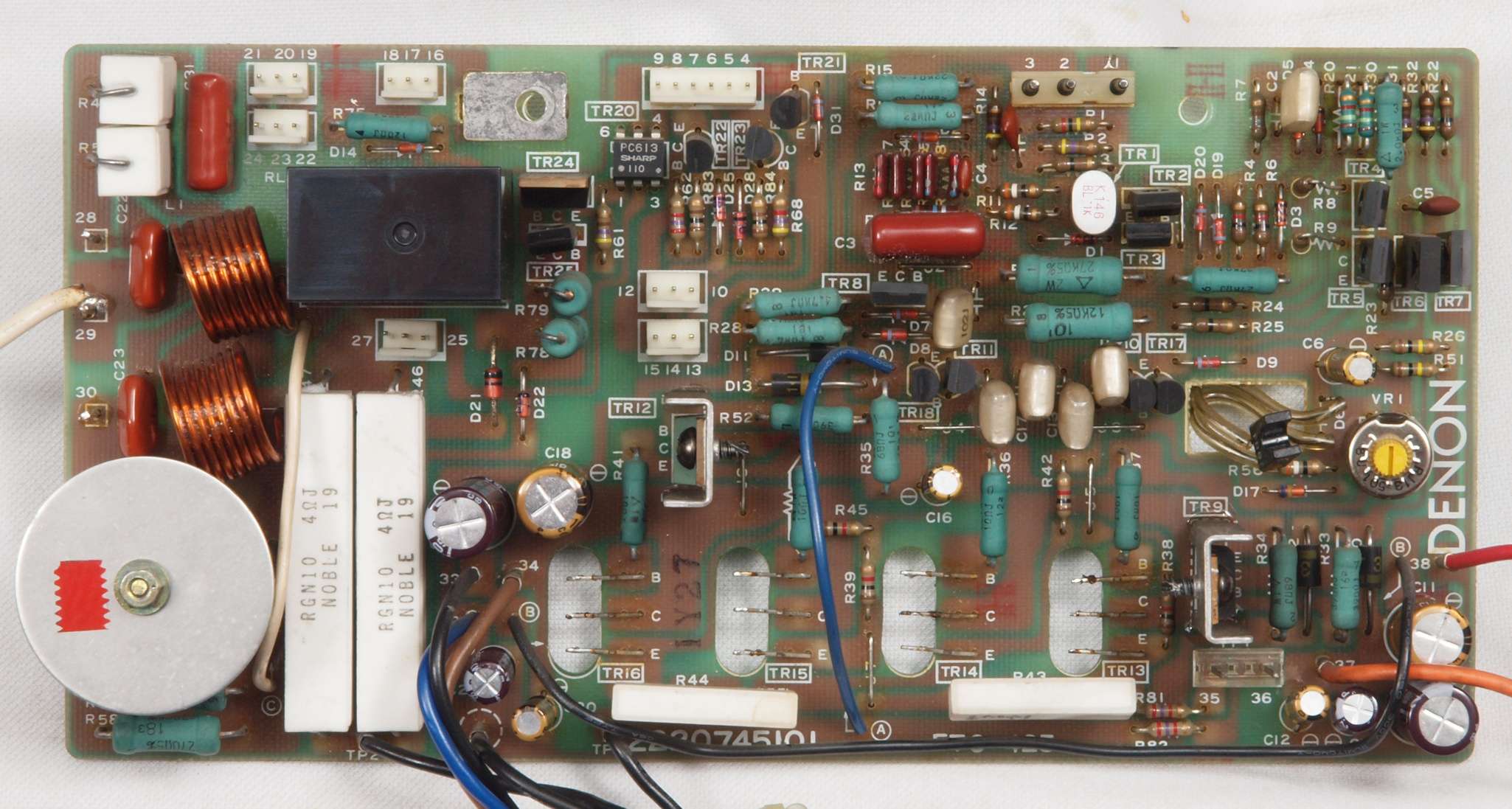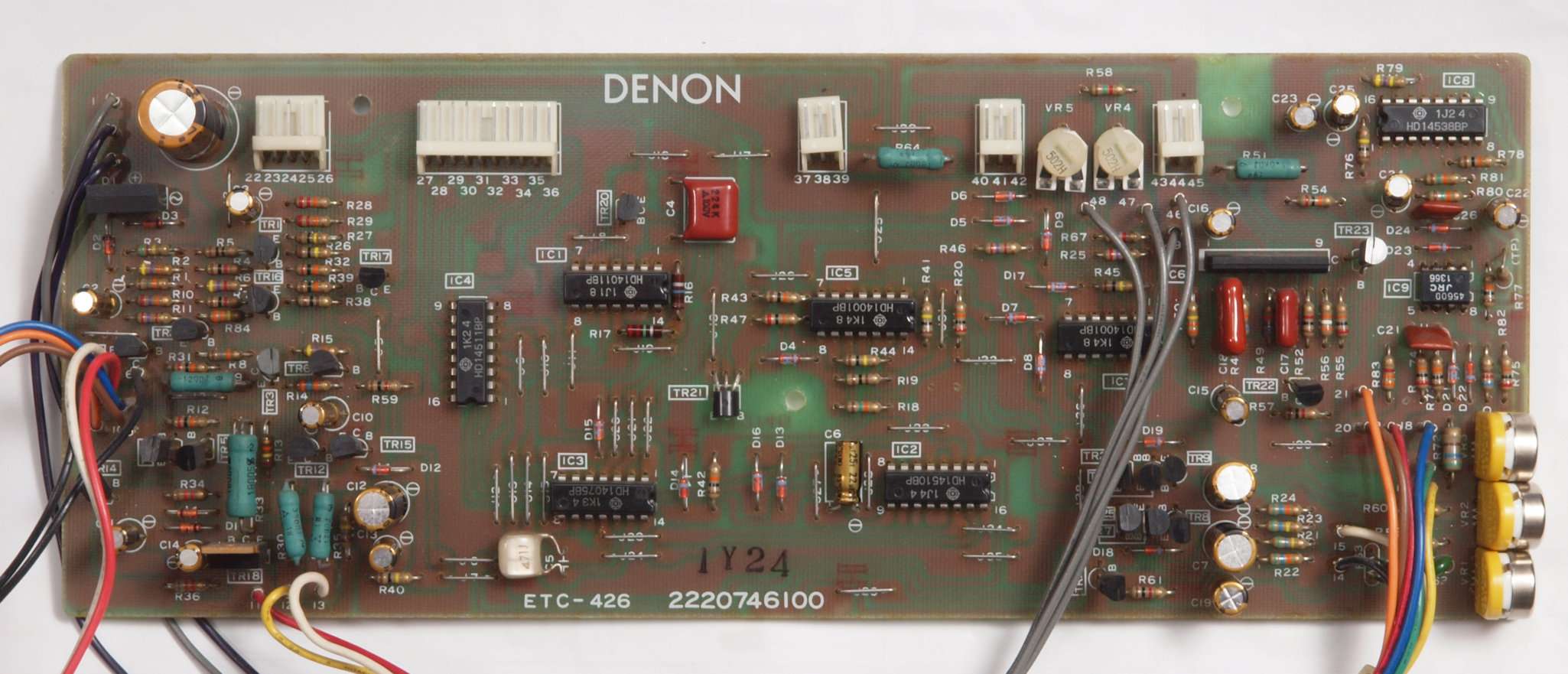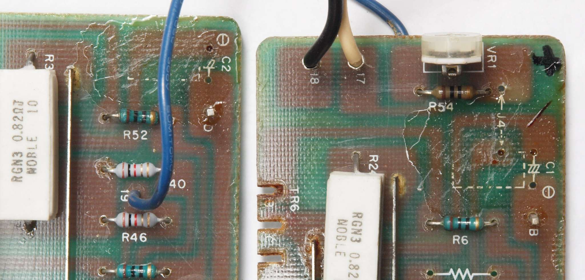 半固定VR3個、電解コンデンサー個21、TR(トランジスター)2個、OP−AMP6個交換。