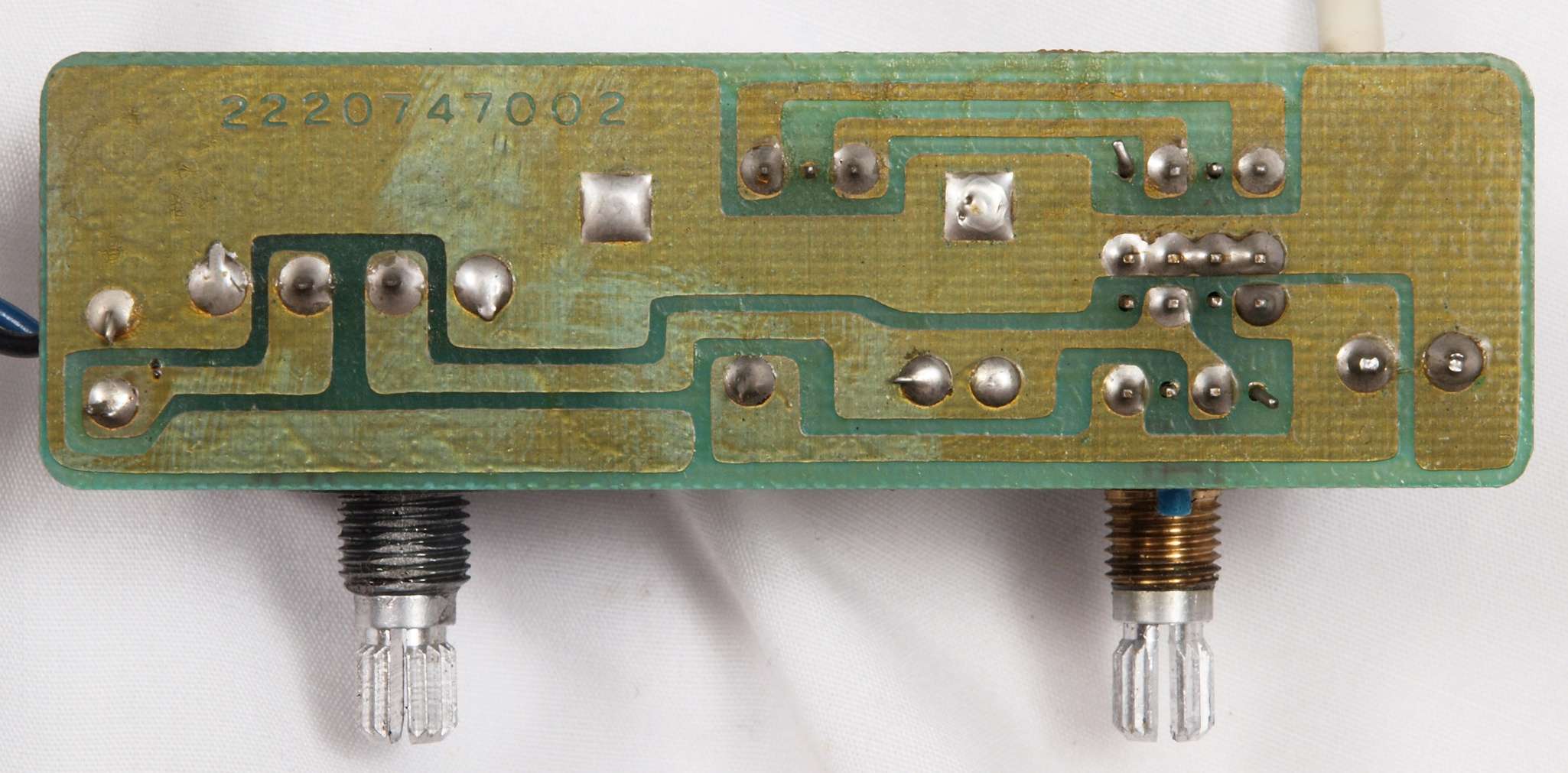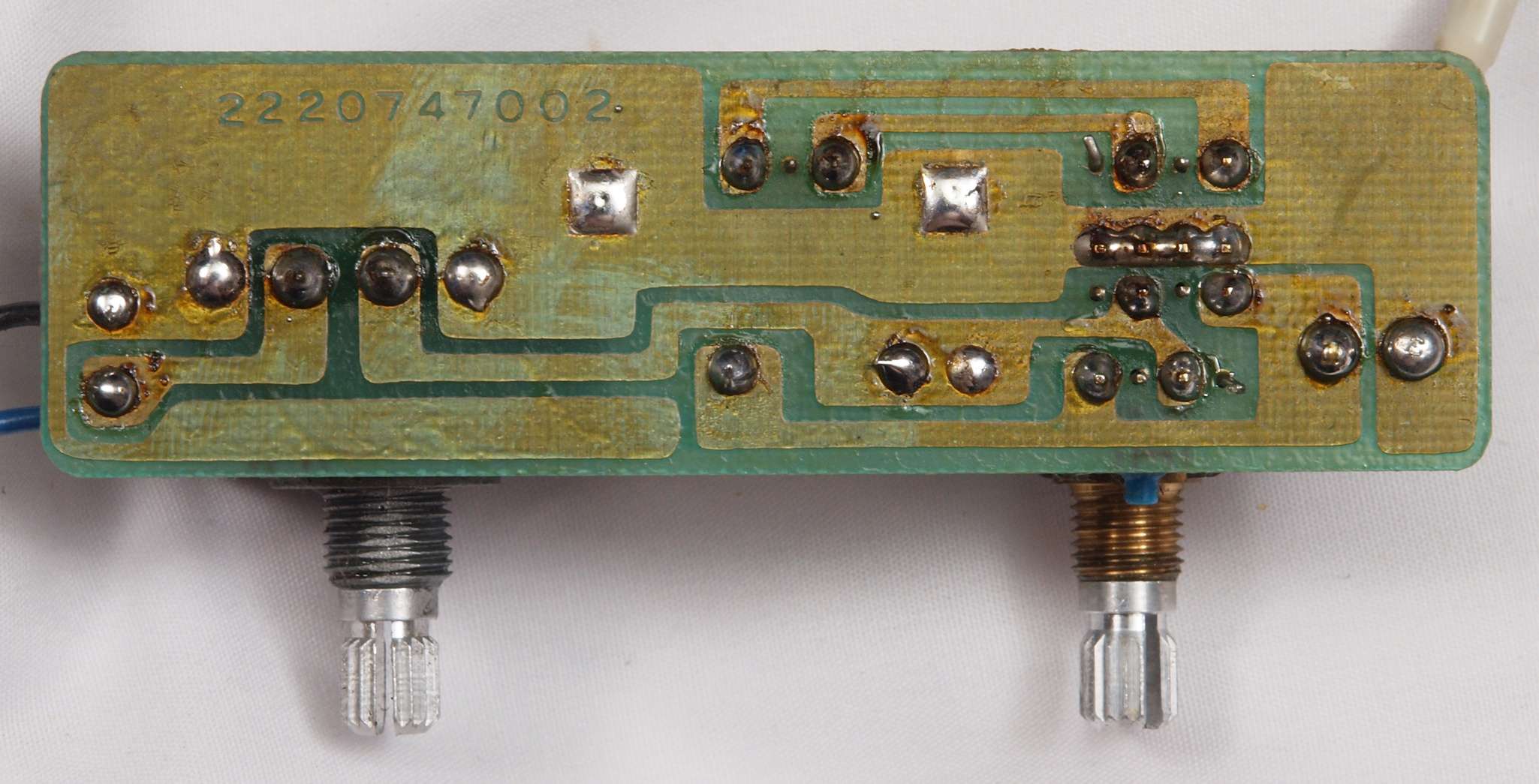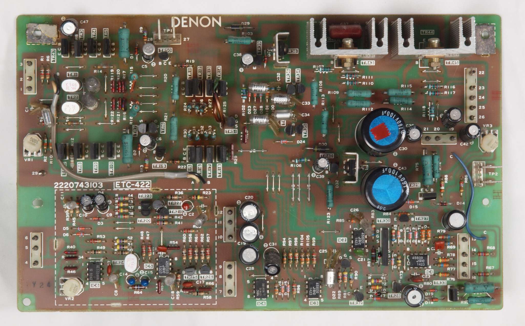 半固定VR3個、電解コンデンサー個21、TR(トランジスター)2個、OP−AMP6個交換。