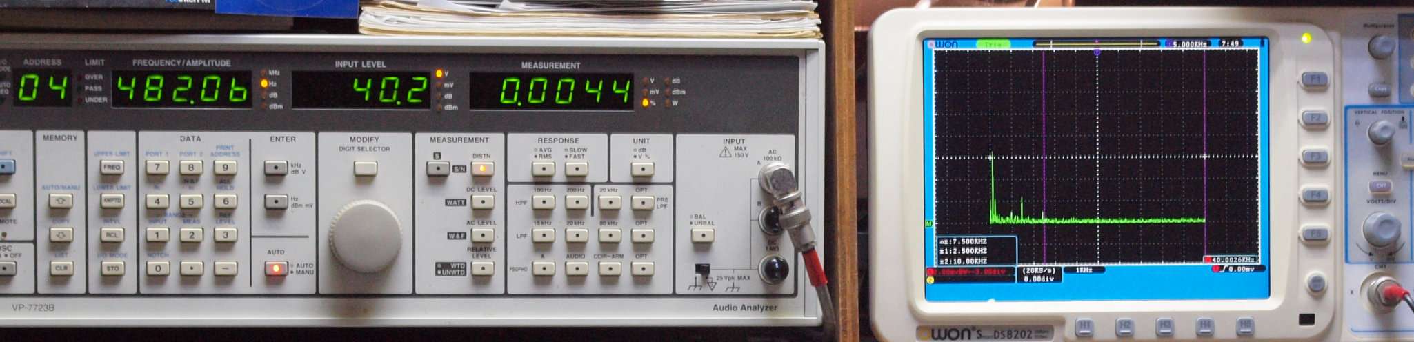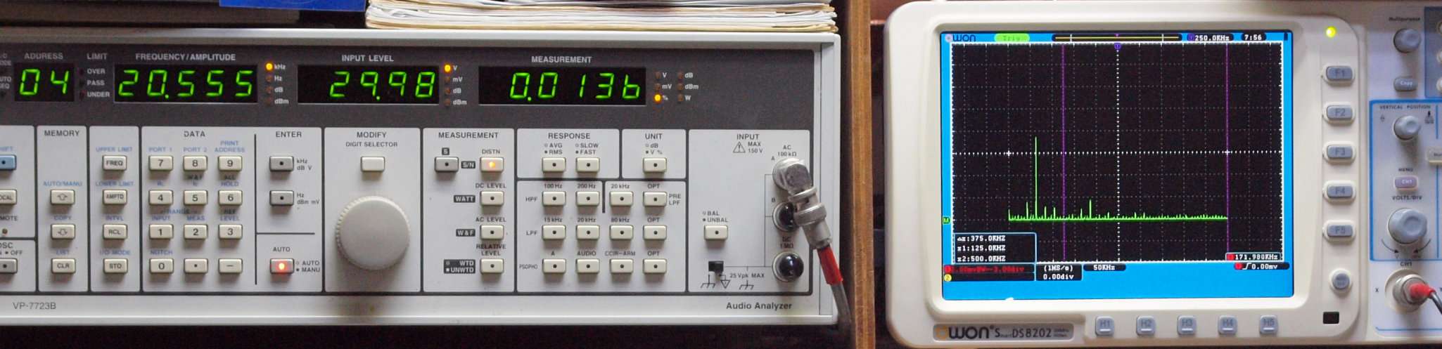 よって、ダイアル設定出力レベルより低くなります。測定機器の仕様や整備の様子はこちら、「VP−7723B」「VP−7201A」。 FFT画面の見方はこちら。