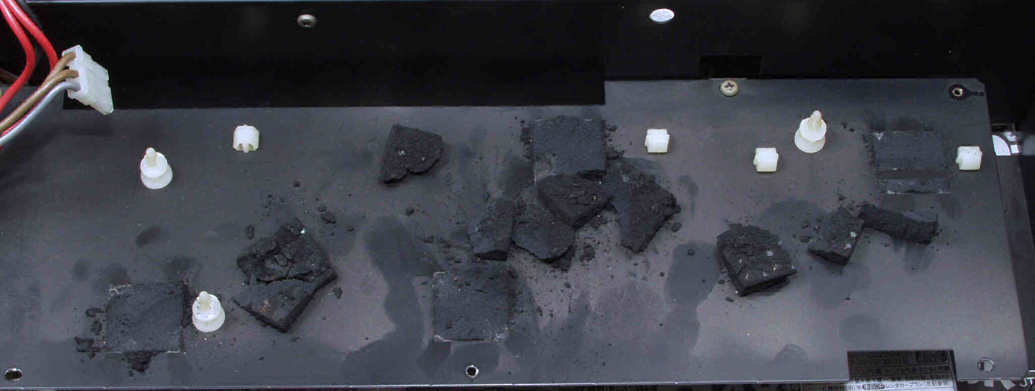 C114. 修理中 基板を固定するスポンジは変成して、固形化している、電源・コントロール基板取り付け場所。