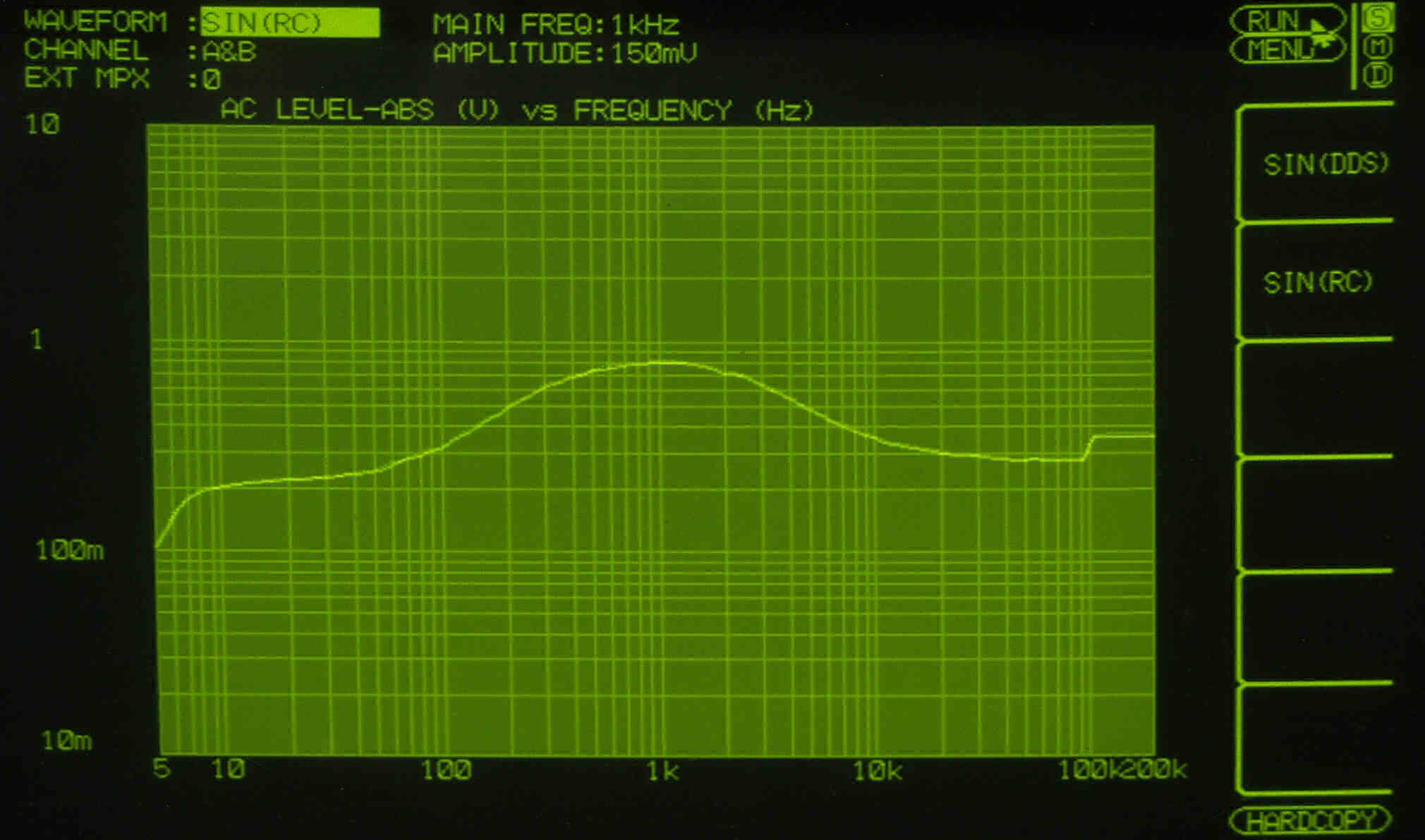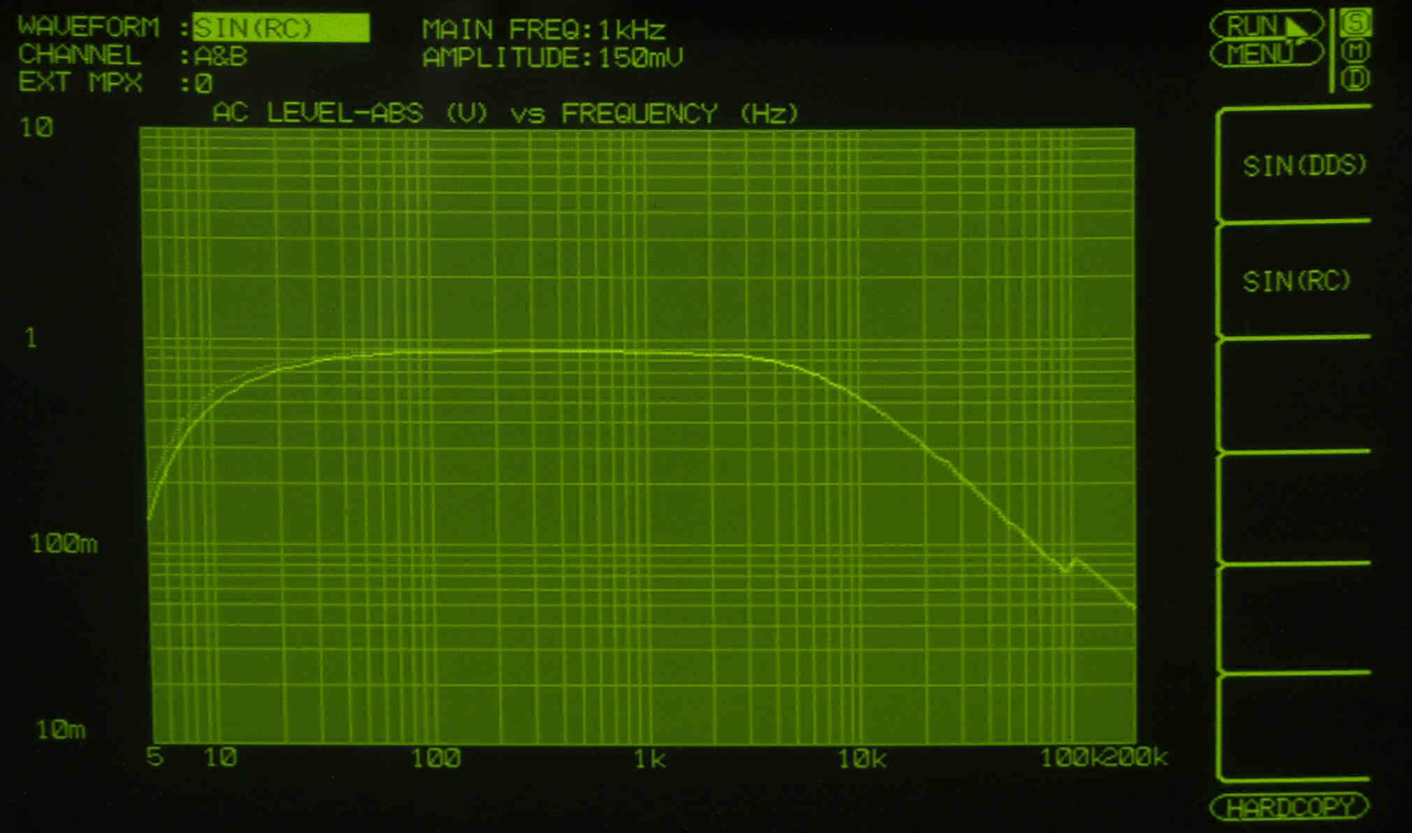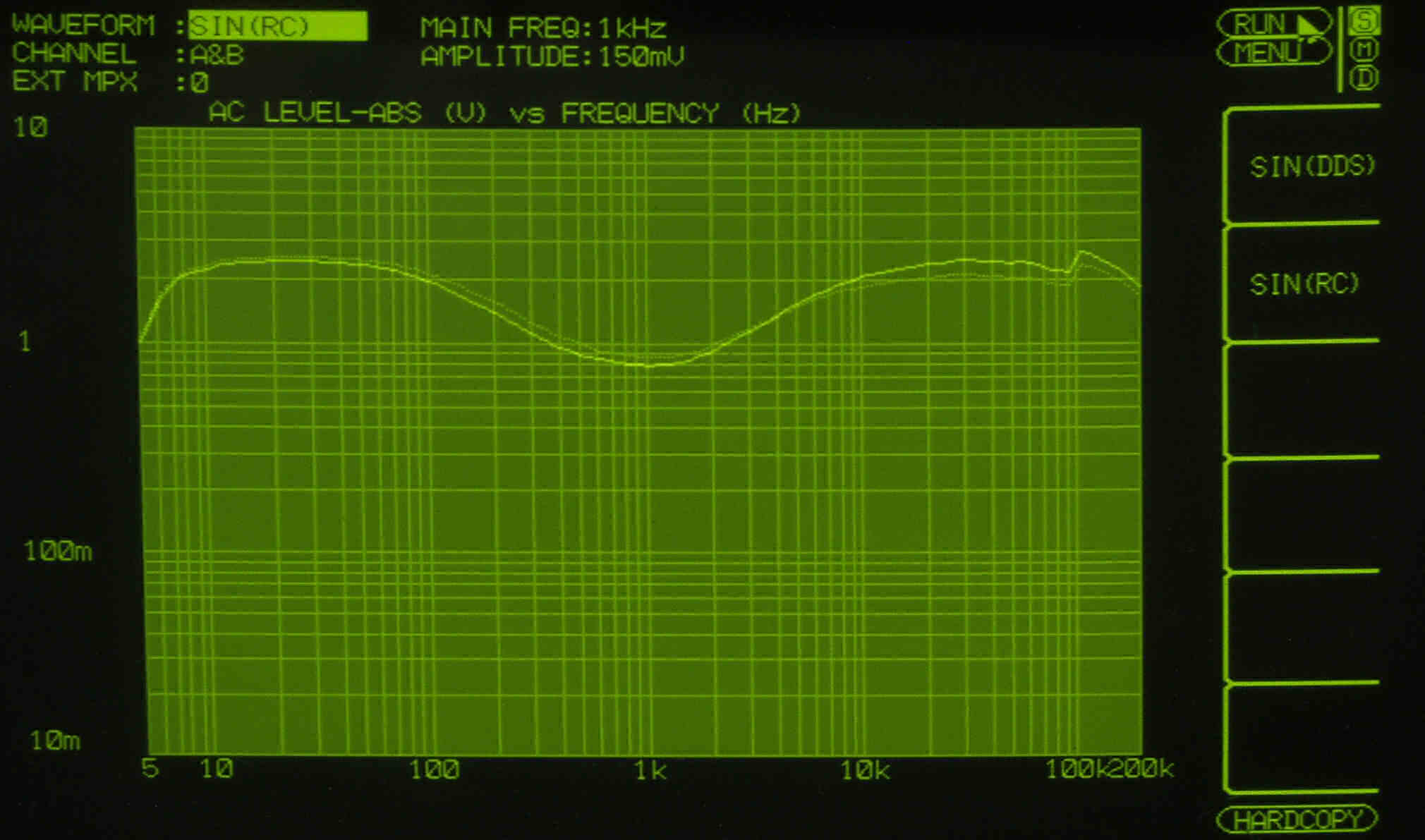 AUX入力端子へ150mV一定入力 VRはmax  左出力=薄(細い)色 右出力=濃い(太い)色