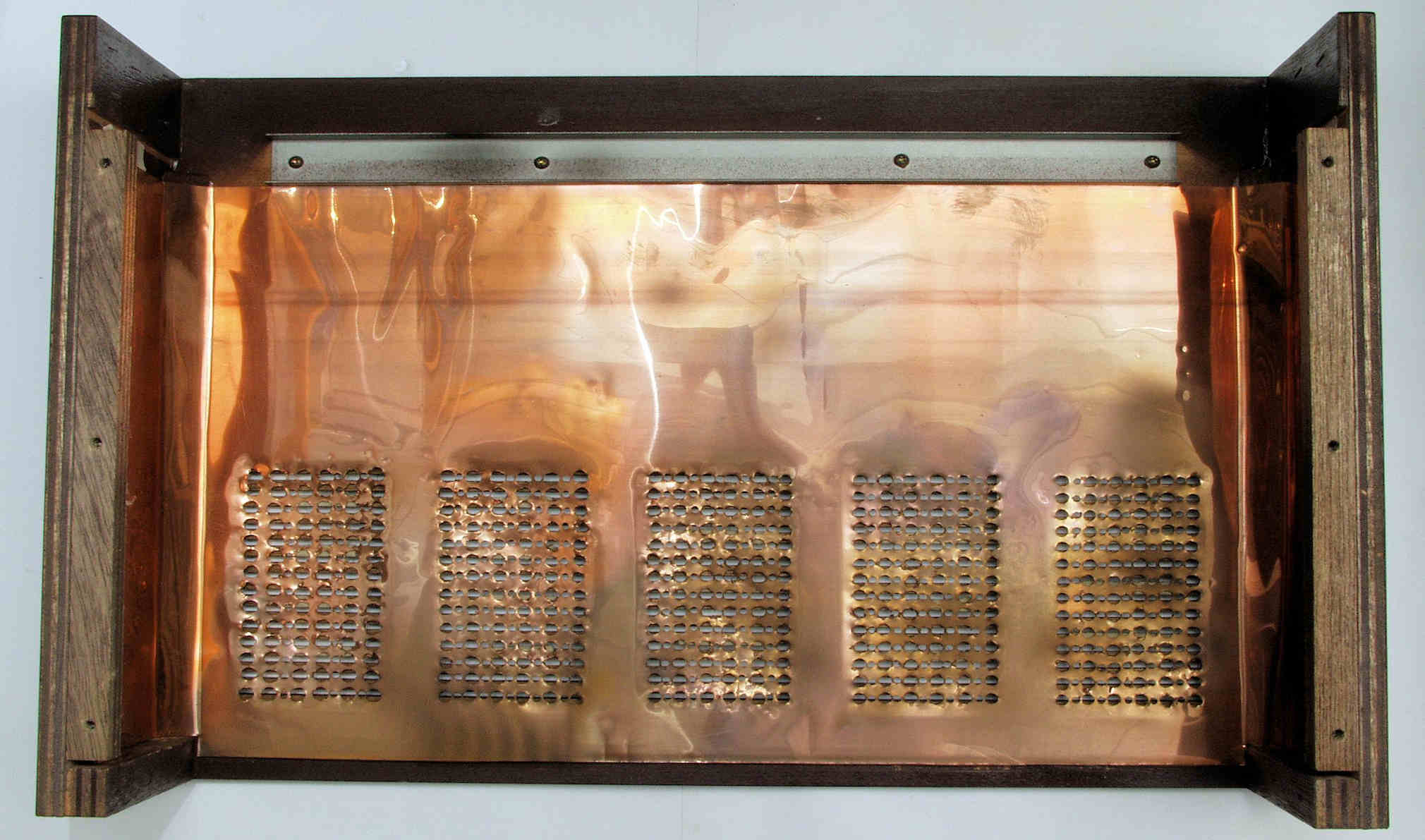 A54. 点検中 上木ケース裏に貼られた薄 銅板、後側。