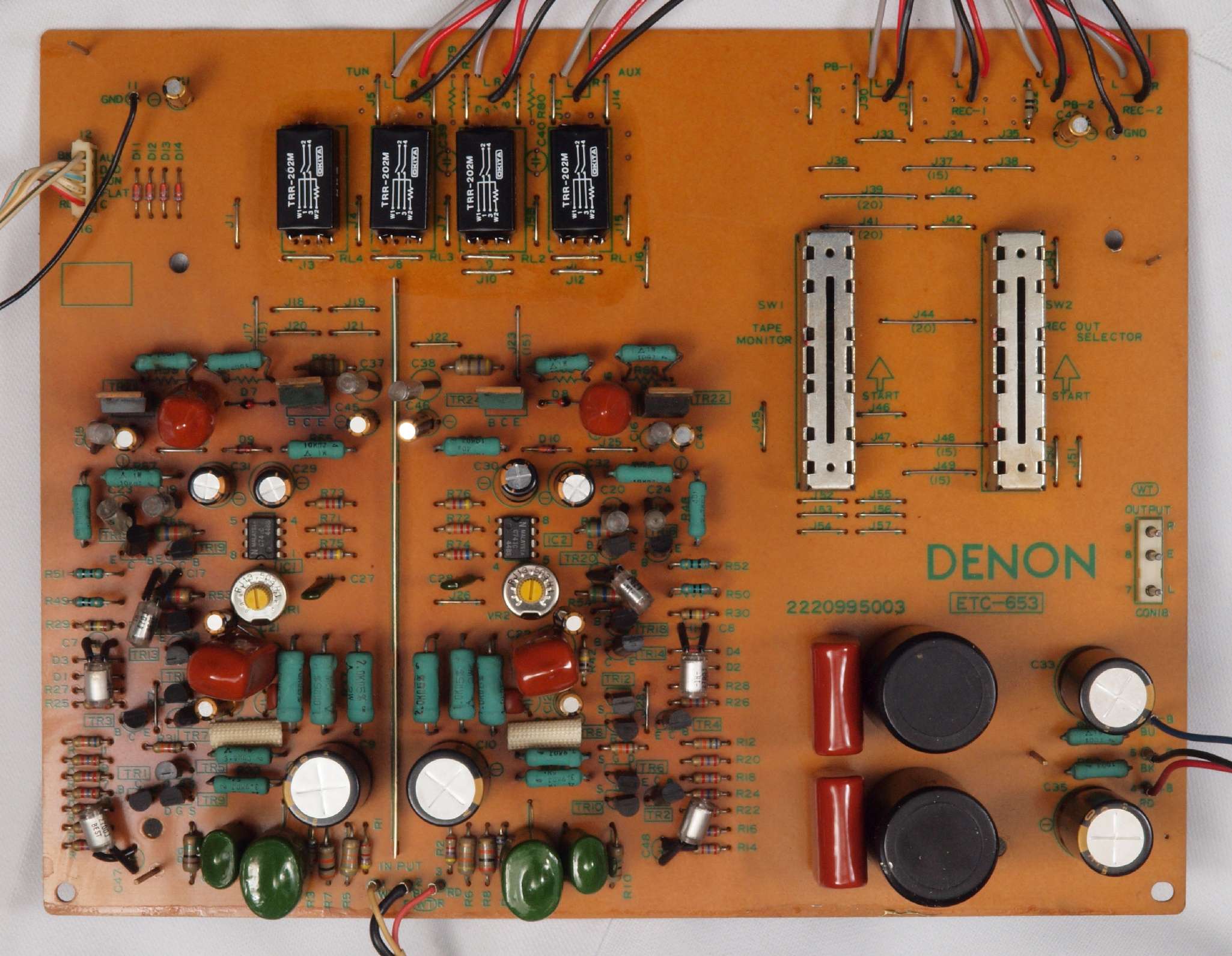 | C12. 修理後 EQ−HEAD-AMP基板。 電解コンデンサ−28個、リレー3個交換。 | ||||||||||||||||||||||||||||||||||||||||||||||||||||||||