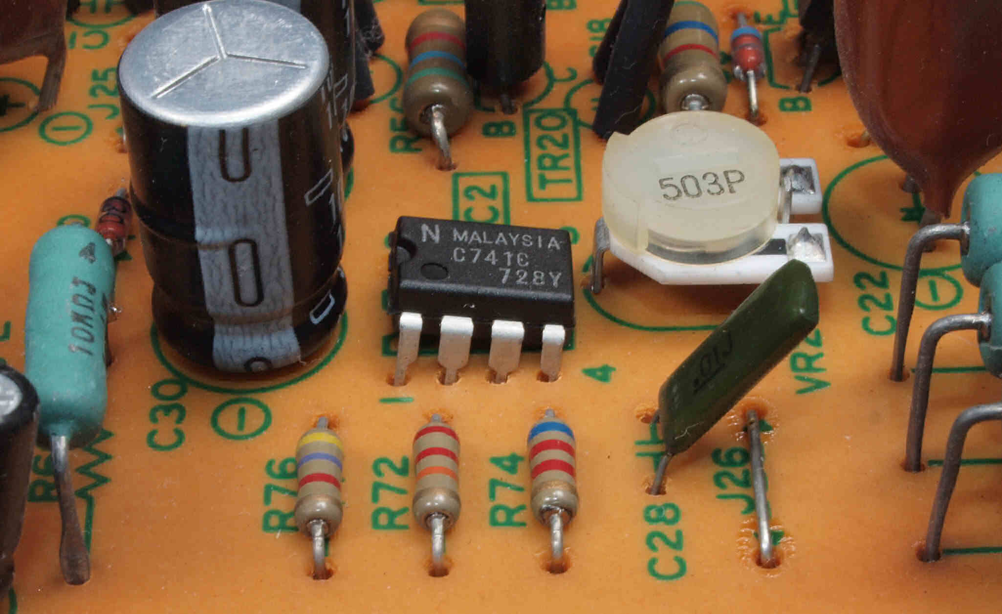 | C214. 修理中 EQ−AMP。 トルエン溶媒の接着剤を取り去り、ジャンパー線を交換後、コートを塗布後。 | ||||||||||||||||||||||||||||||||||||||||||||||||||||||||