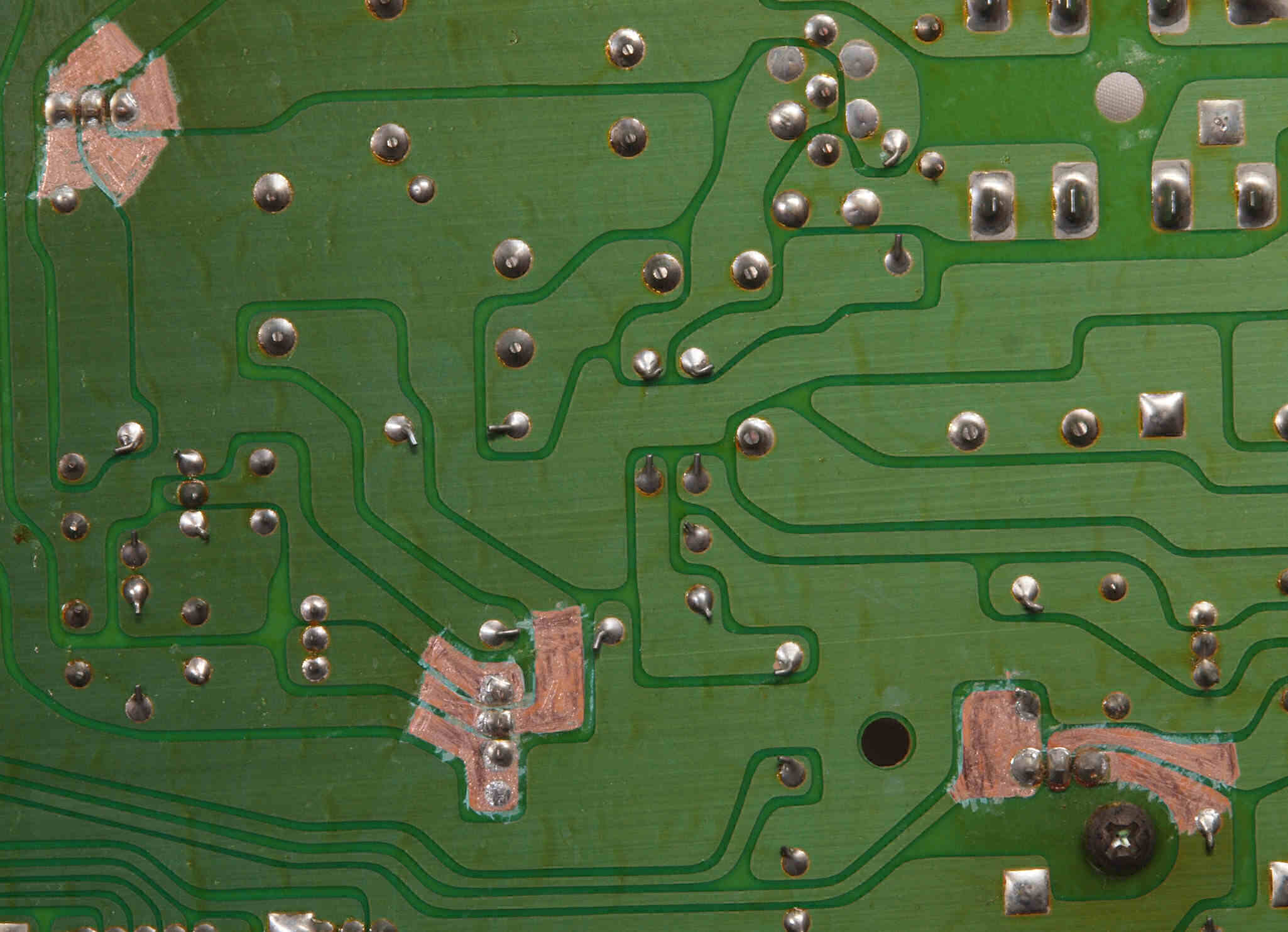 | C333. 修理中 電源・コントロール基板裏。 曲げる方向が悪く隣の銅箔に? | ||||||||||||||||||||||||||||||||||||||||||||||||||||||||