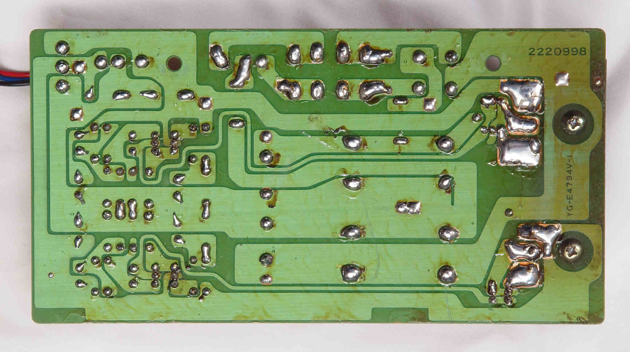 | C34. 修理(半田補正)後 電源・コントロール基板裏。 全ての半田をやり修す。 | ||||||||||||||||||||||||||||||||||||||||||||||||||||||||