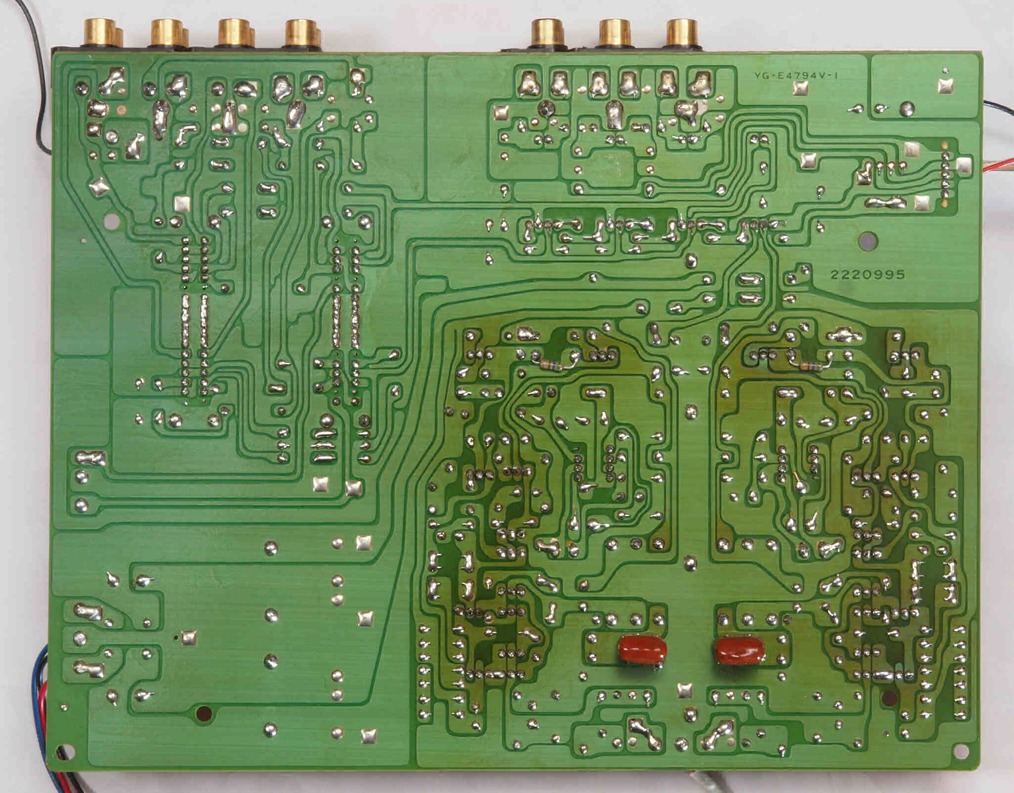 | C231. 修理中 EQ−AMP基板裏。 曲げる方向が悪く隣の銅箔に? 他にも沢山あり。 | ||||||||||||||||||||||||||||||||||||||||||||||||||||||||