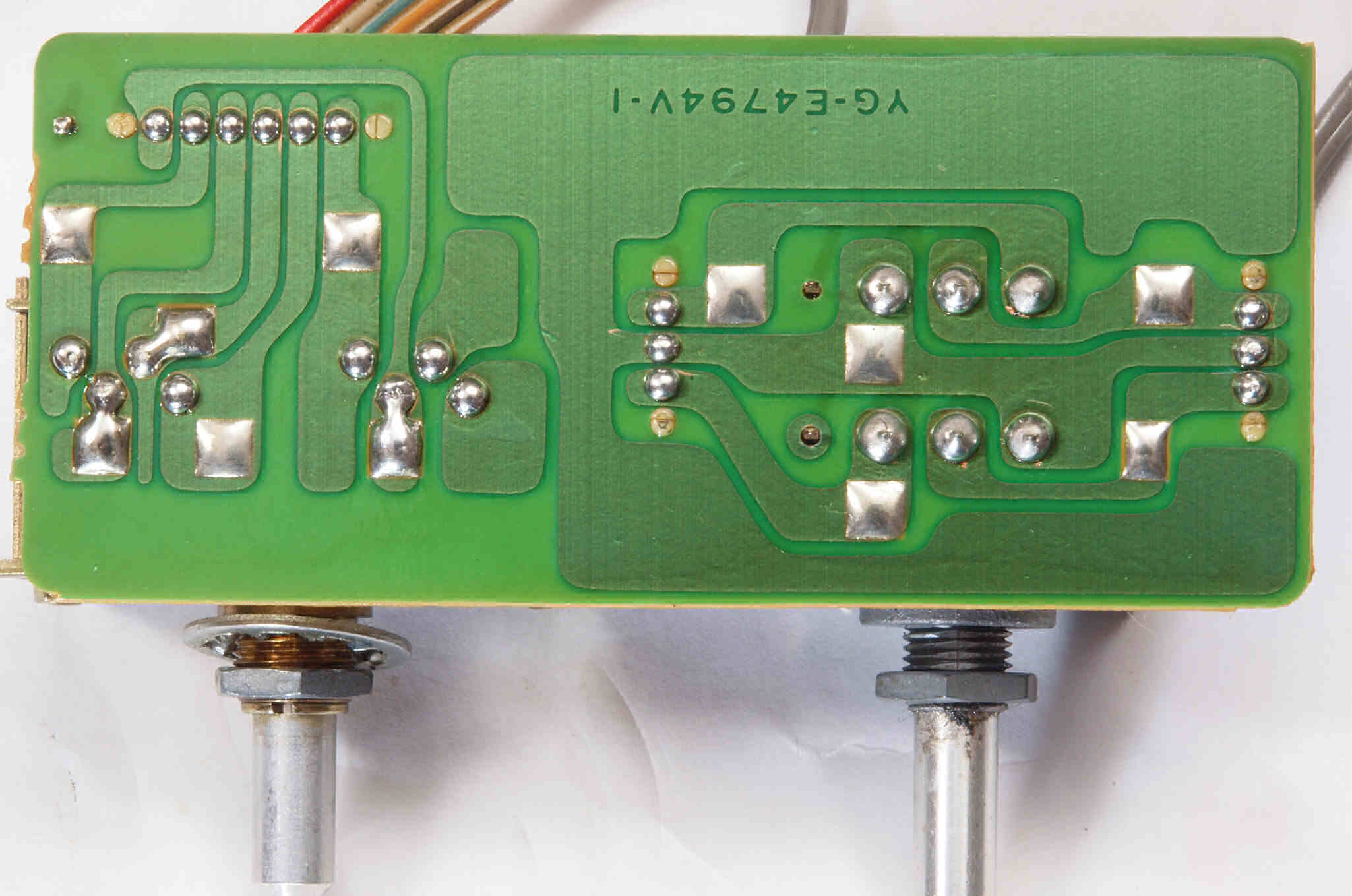 | C74. 完成バランスVR+プリセットセレクター基板裏。 余分なフラックスを落として、コート液を塗る。 | ||||||||||||||||||||||||||||||||||||||||||||||||||||||||