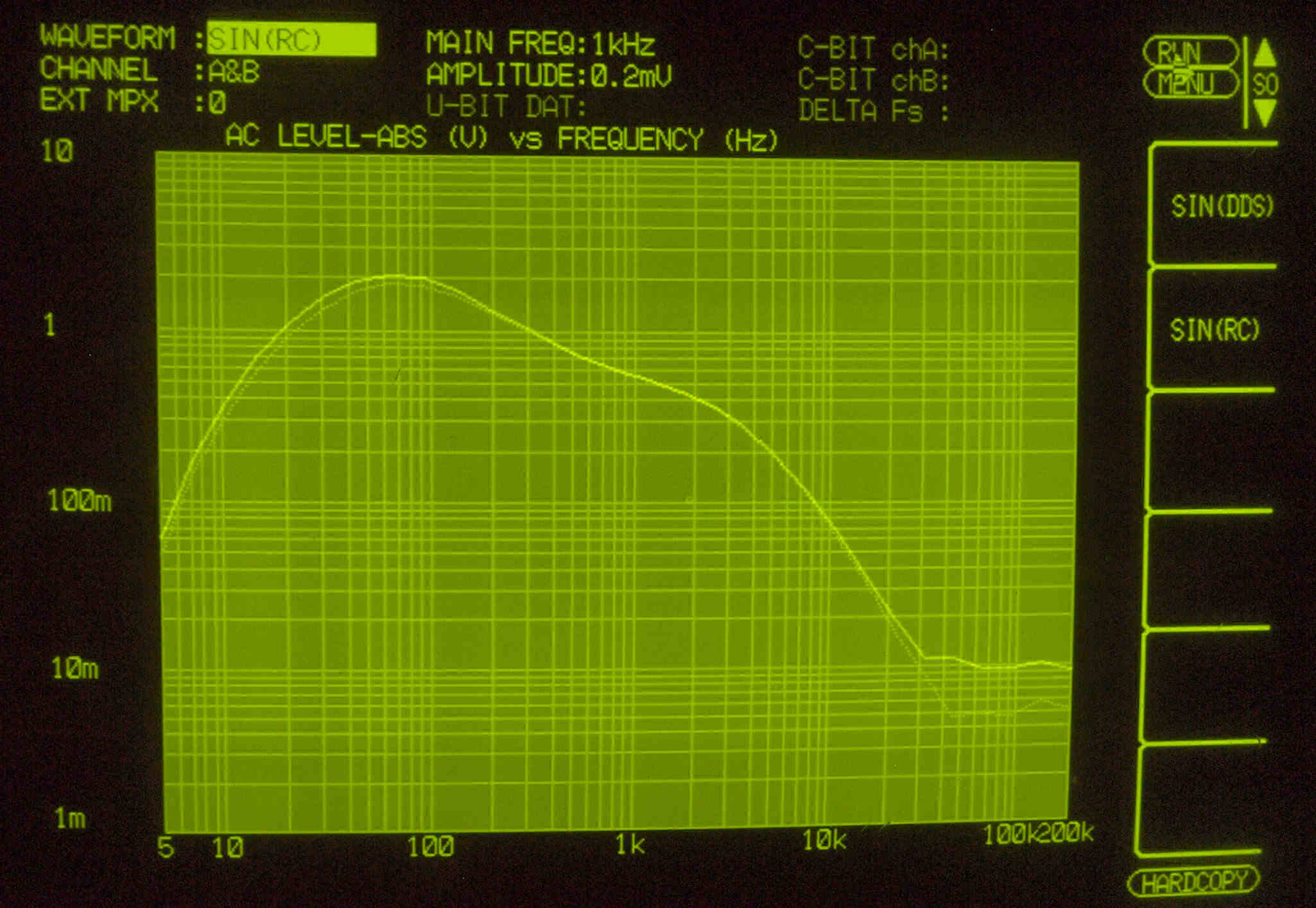 | F. 上位測定器による 調整・測定。 画像をクリックすると、大きく(横幅2050ドット)表示されます。 F0. 下のオーディオアナライザーVP−7732Aで自動測定 |