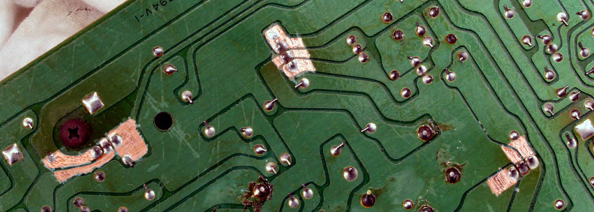C434. 修理中 電源・コントロール基板裏  半田面積を増す