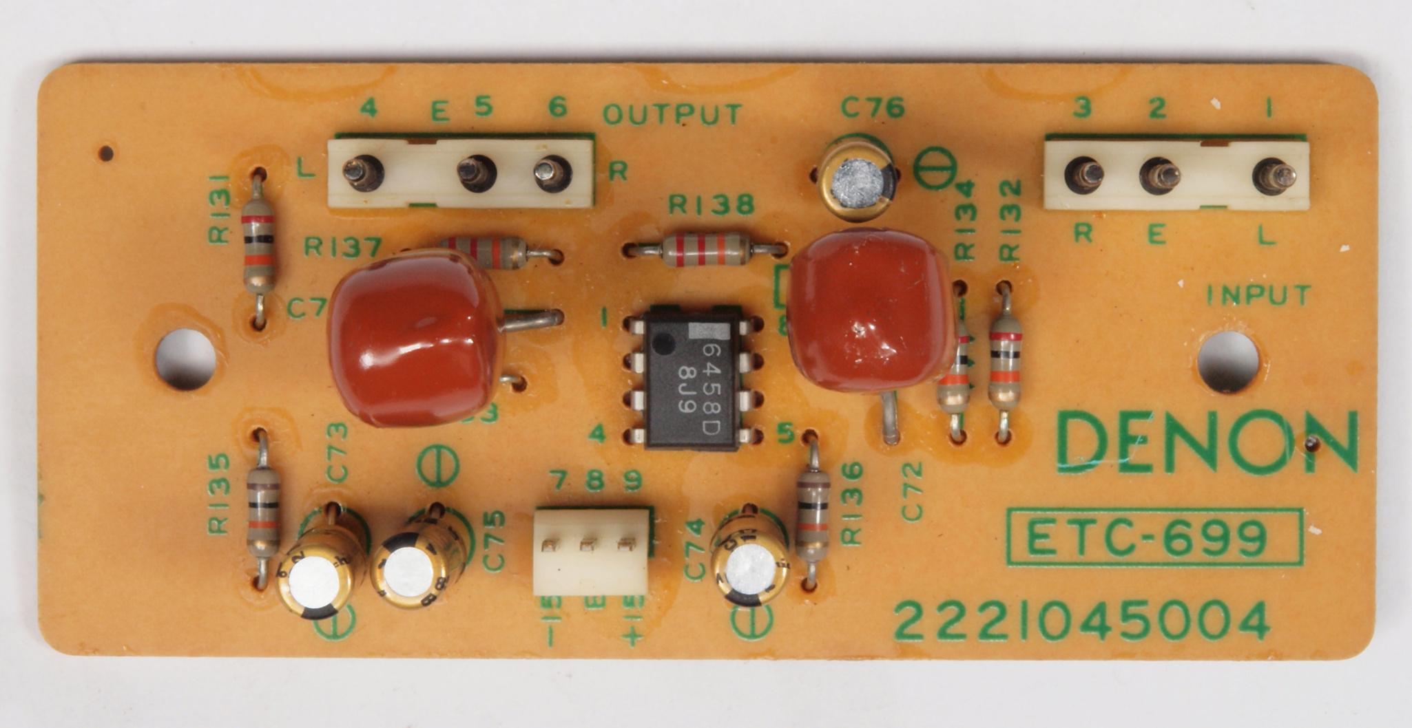 C11. 修理前 EQ−HEAD-AMP基板。 左=MM、中=MC、右=トランス使用MC。 上右端がMC−トランス。