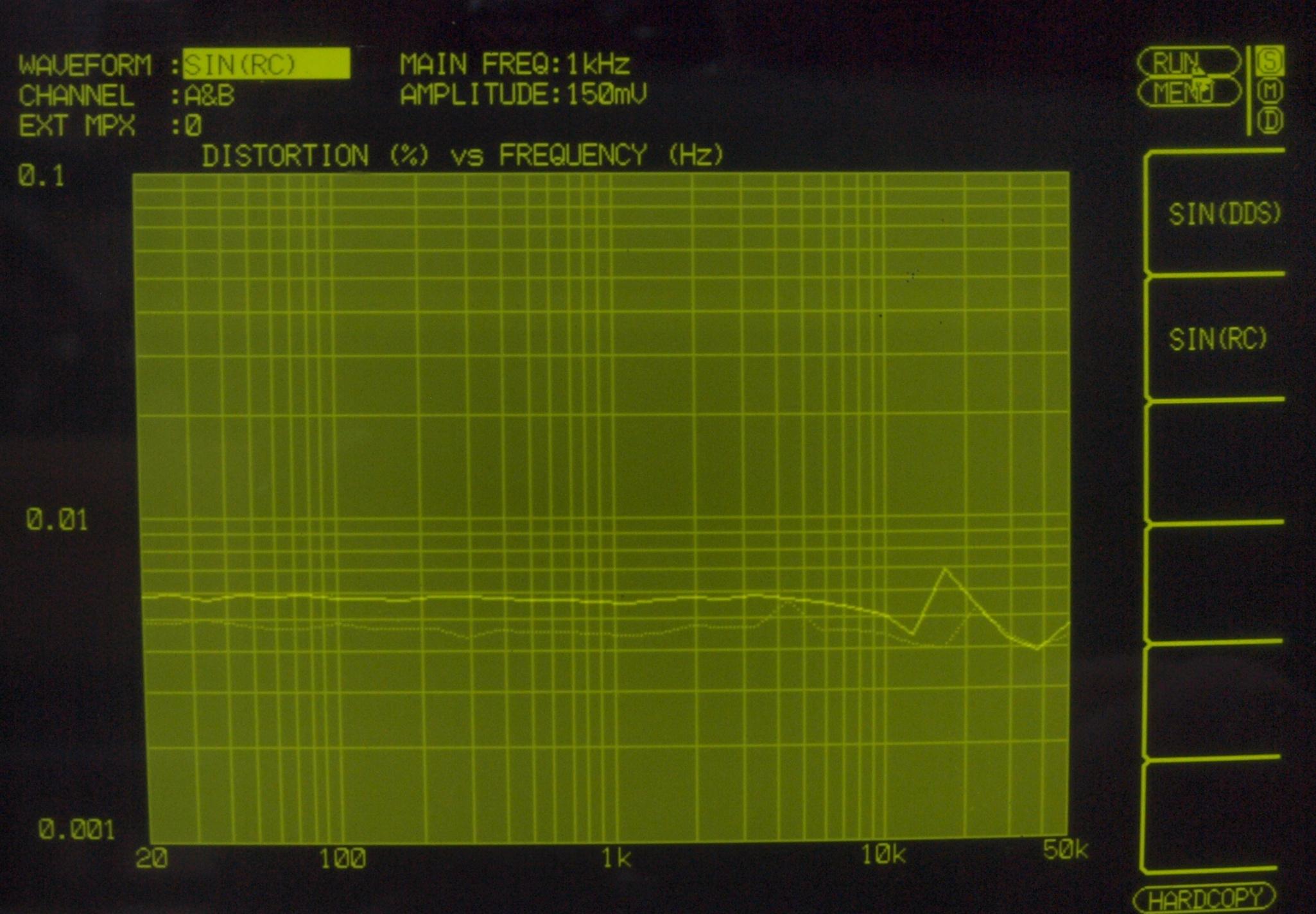 全高調波ひずみ率 0.001%以下 1kHz 20V出力時(PHONO-1)...注=REC OUTが20Vにはなりません!