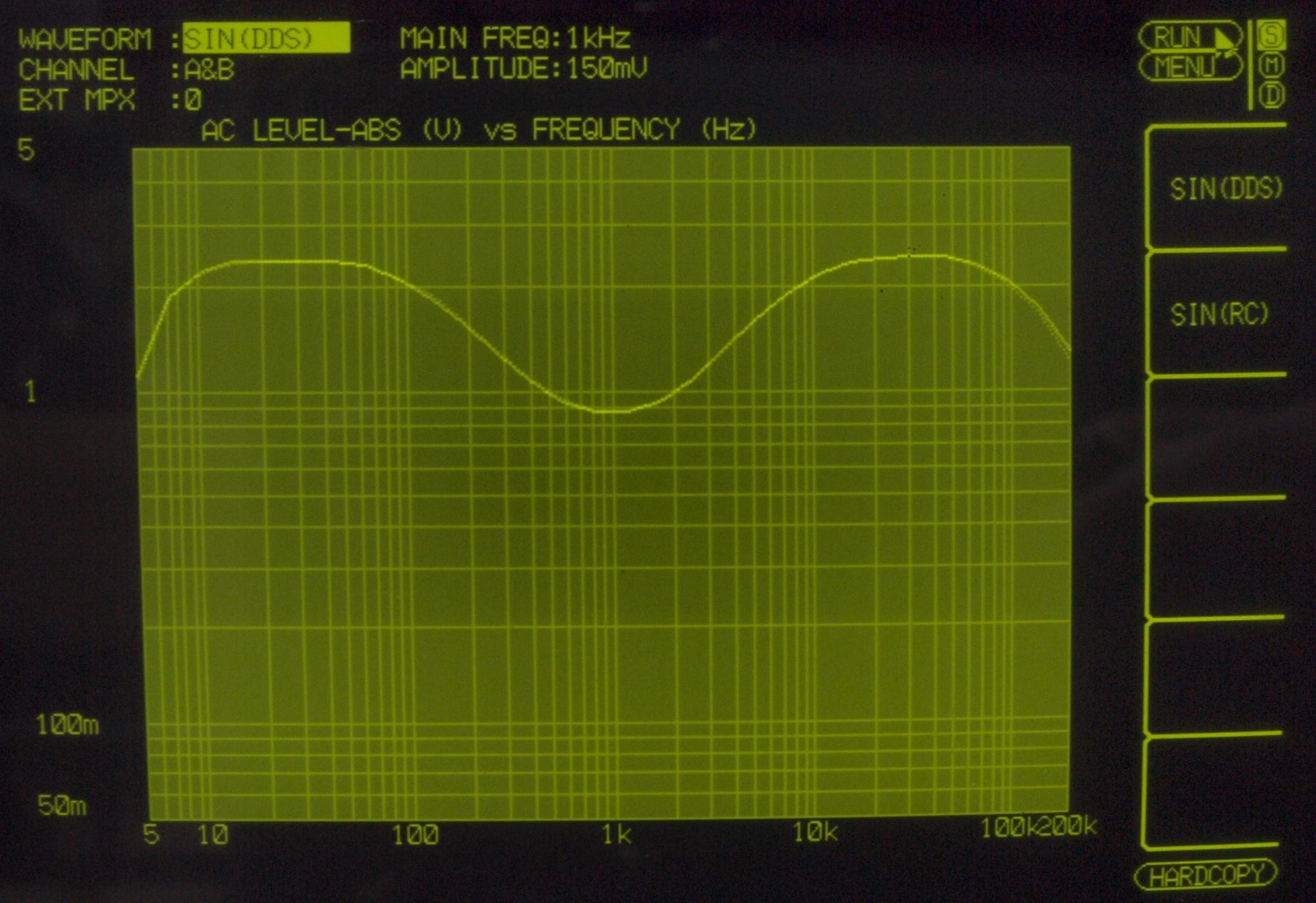 AUX入力端子へ150mV一定入力 VRはmax。 左出力=薄(細い)色 右出力=濃い(太い)色