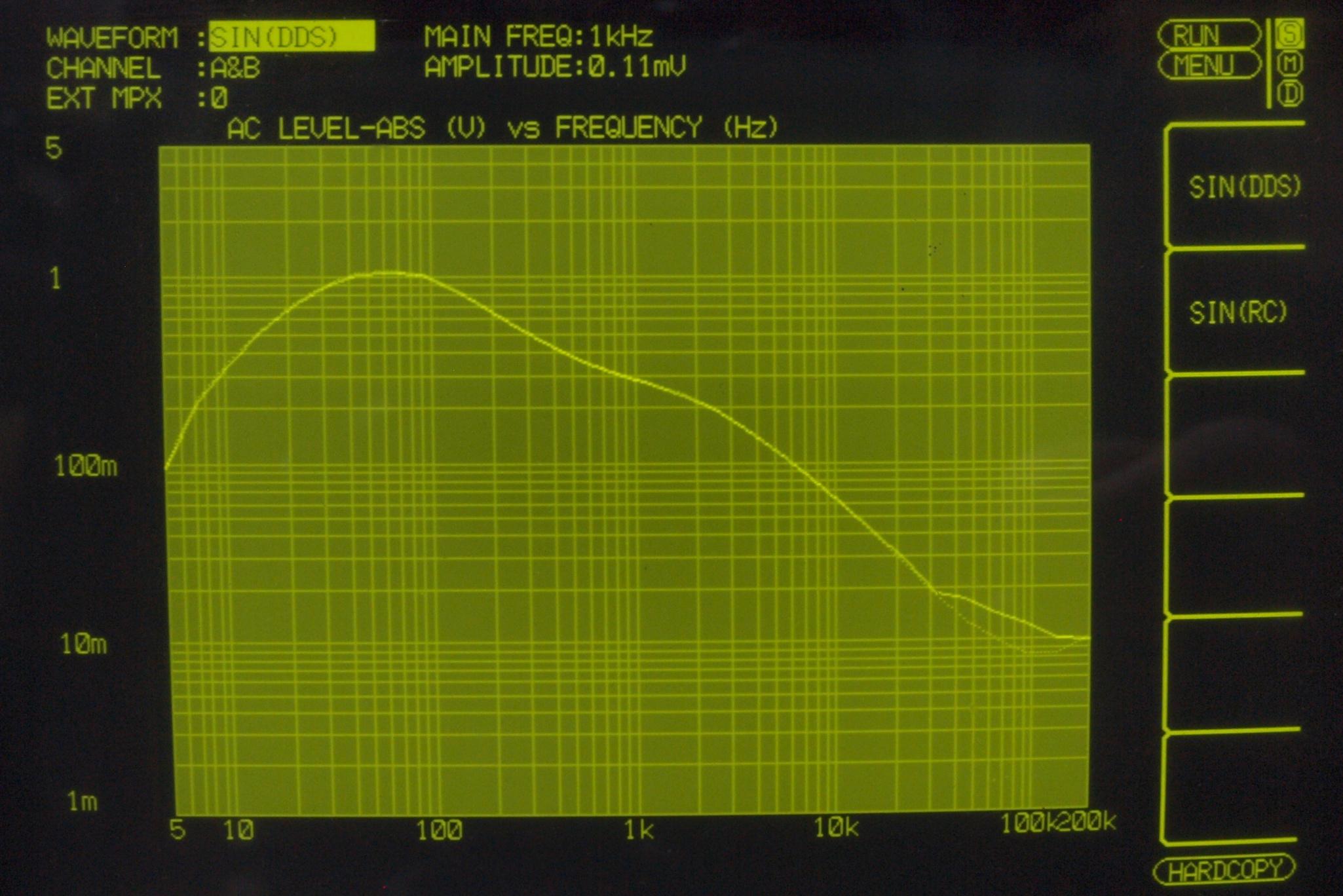 MC入力端子へ0.11mV入力 VRはmax   左出力=薄(細い)色 右出力=濃い(太い)色。