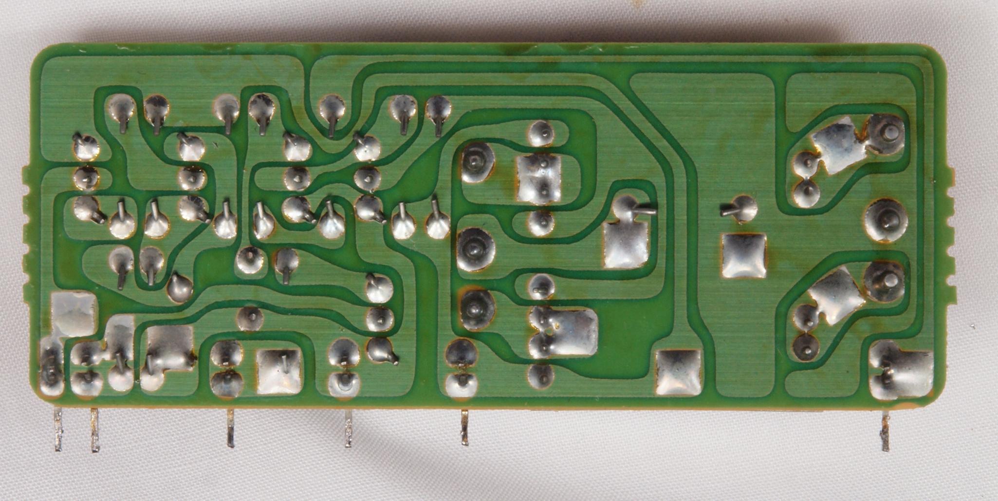 C15. 完成EQ−HEAD-AMP基板裏。 余分なフラックスを落として、コート液を塗る。