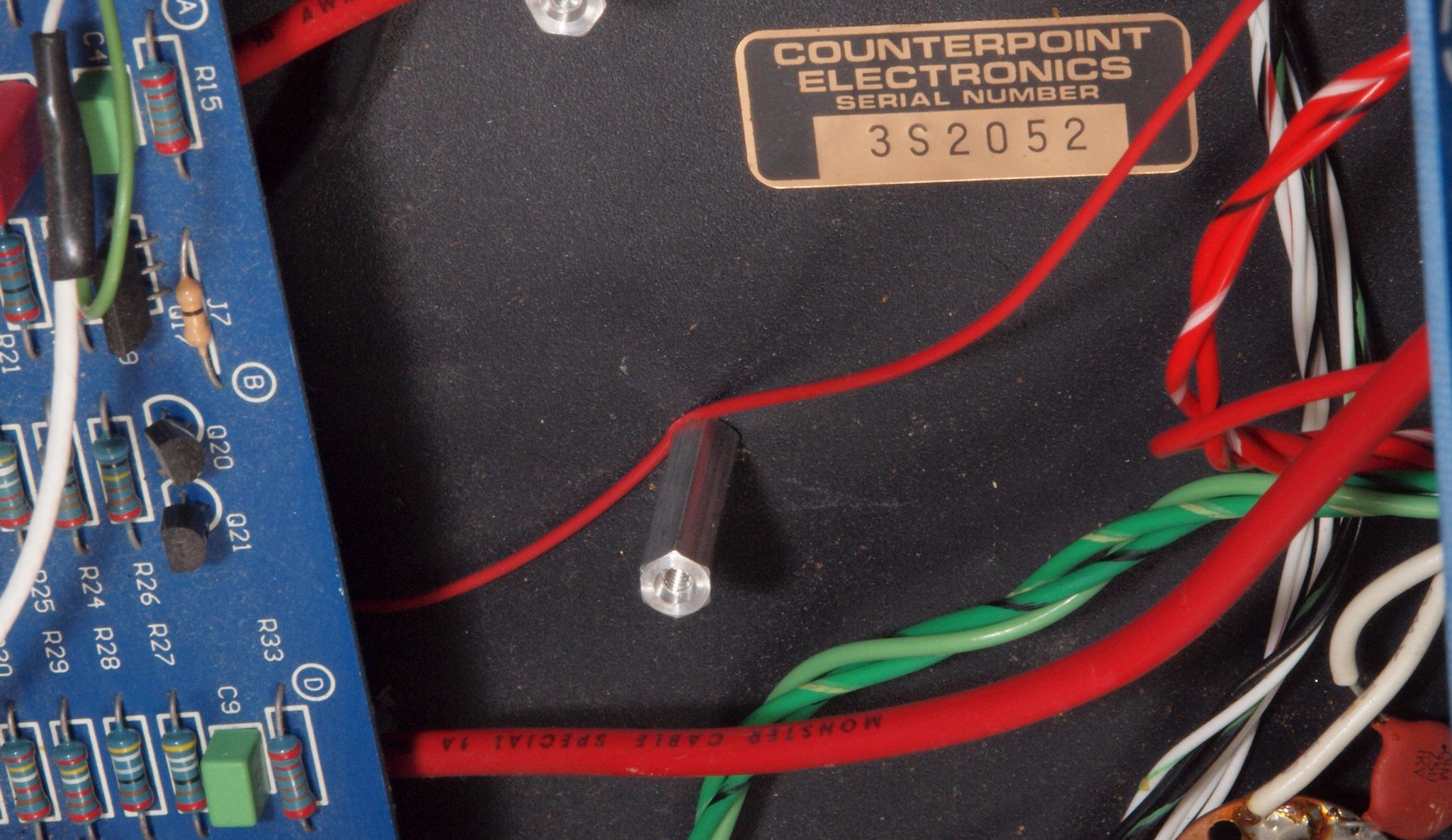 | 下記の様な修理品がありました、修理に出す時、オークションで購入するには、十分に注意して下さい。 CounterPoint Solid M2。 AMP引き出し線を固定ボルトが噛む。 |