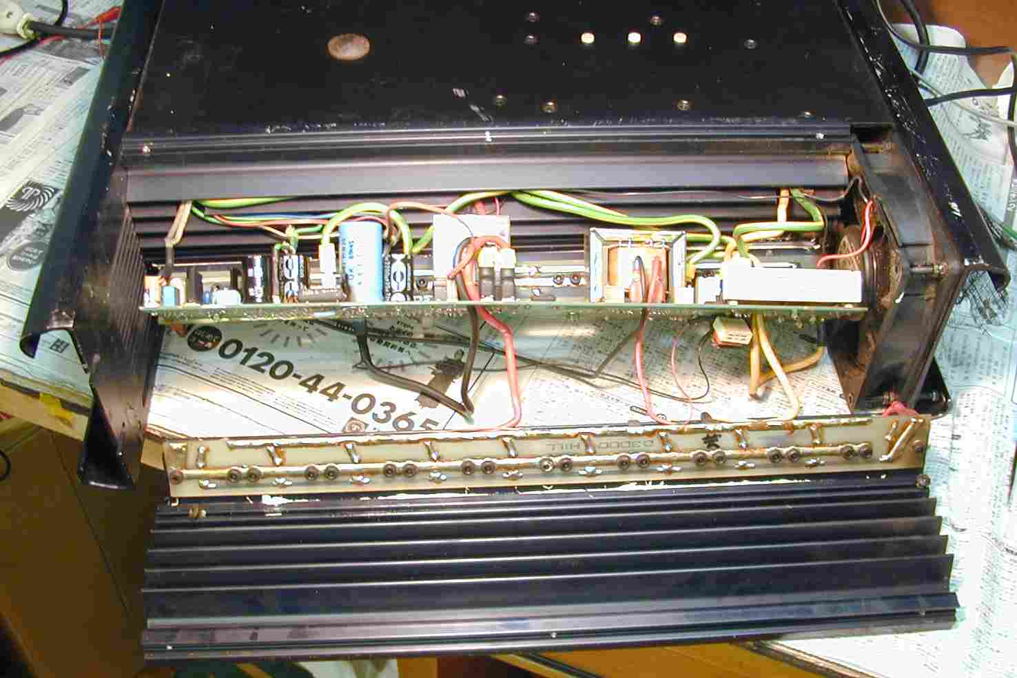 1. 上蓋を開け清掃後、片側TR(トランジスター)が20個のSEPP、出力1.5KW/片側