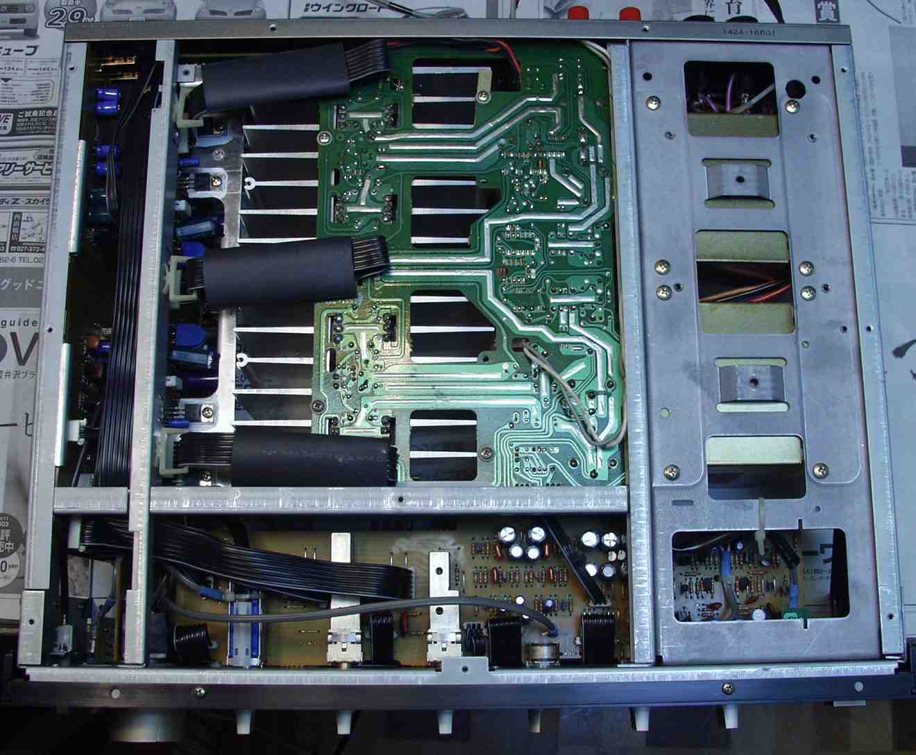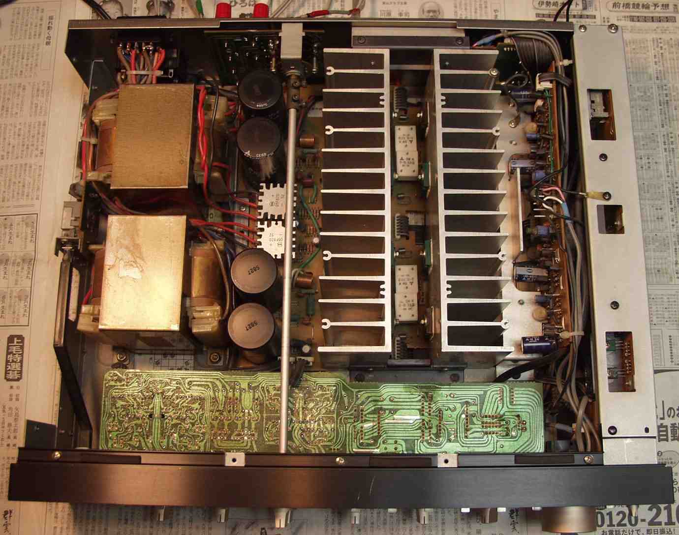 このAMPはSP接続リレーを使用せず、メインAMPの初段をアースして、立ち上げ時の衝撃を防いでいます