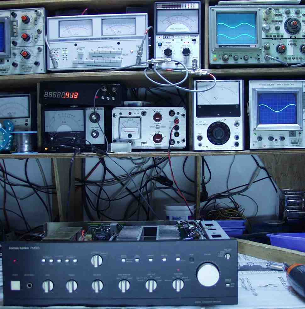 後ろは「AU−X11」 「AU−α907i MOS」 左右は「グラント・ラムレイ GL100AM」 |