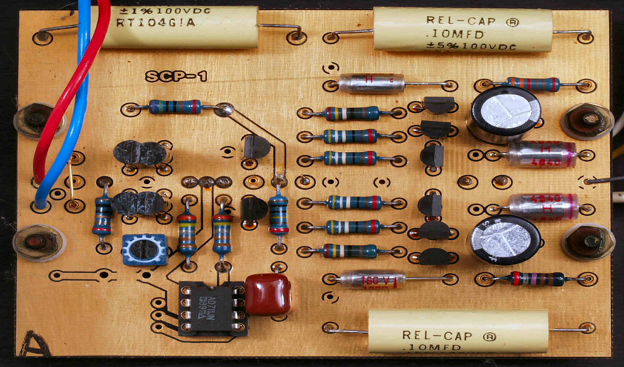 | C6B. 修理後 EQ−AMP基板 電解コンデンサー2個、フイルムコンデンサー3個、OP−AMP交換 |