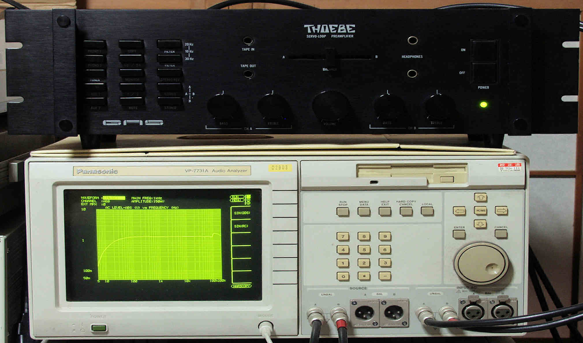 | F. 上位測定機器での調整・測定 F0. 下のオーディオアナライザーVP−7732Aで自動測定。 |