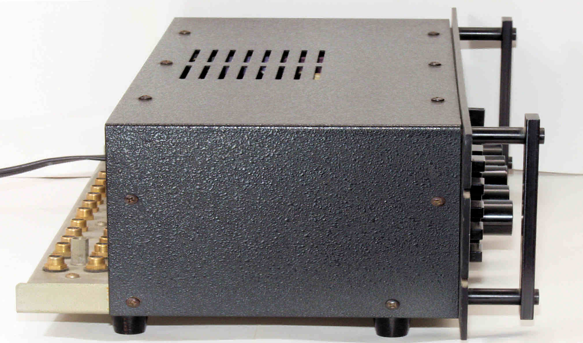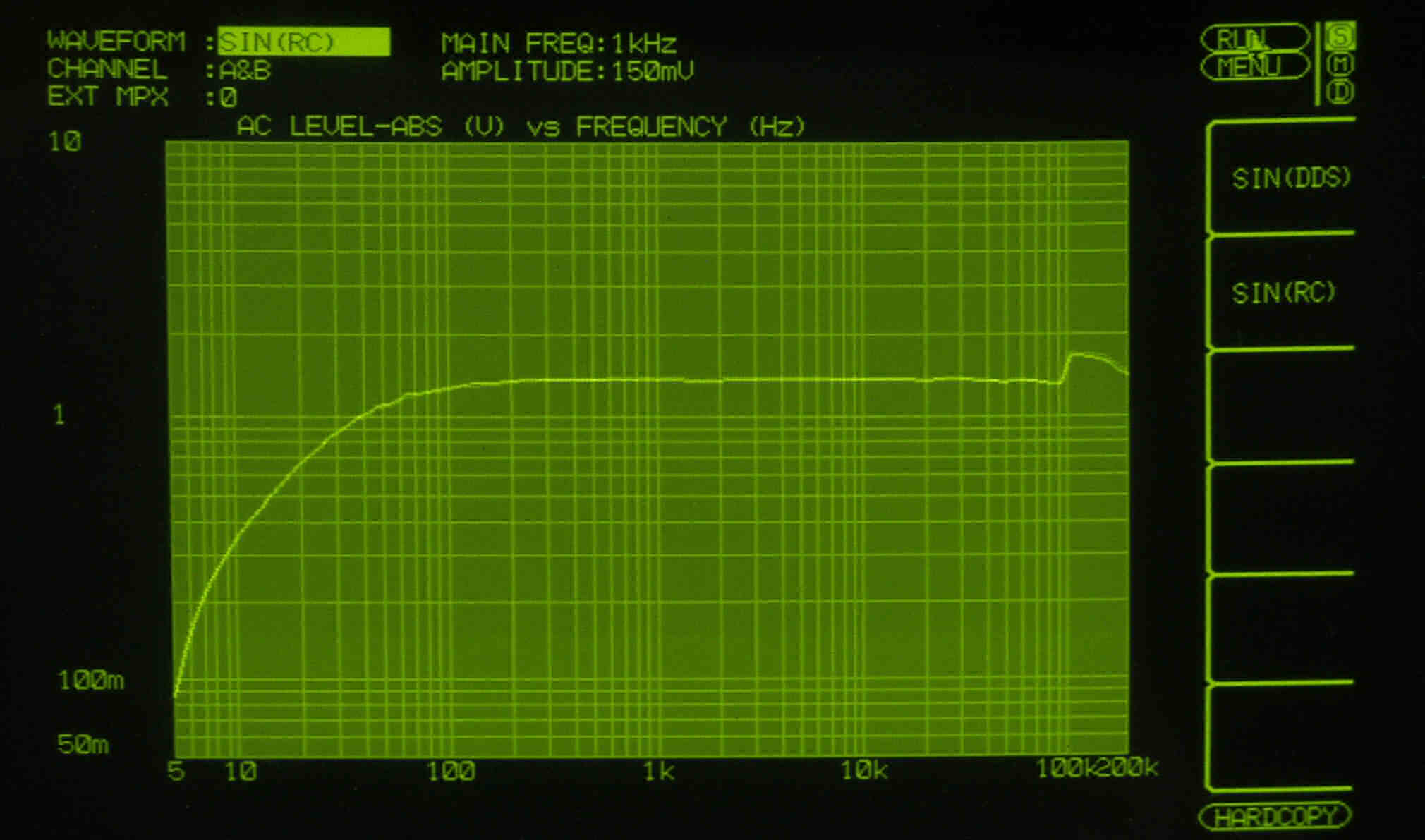 | E41. 出力=15Vの出力でも飽和しない! 歪み率=0.04% MM入力 1000HZ このAMPは入力ジャックの抜き差し等は、十分注意する事。ミスをするとメインAMPやSPを壊します。 |