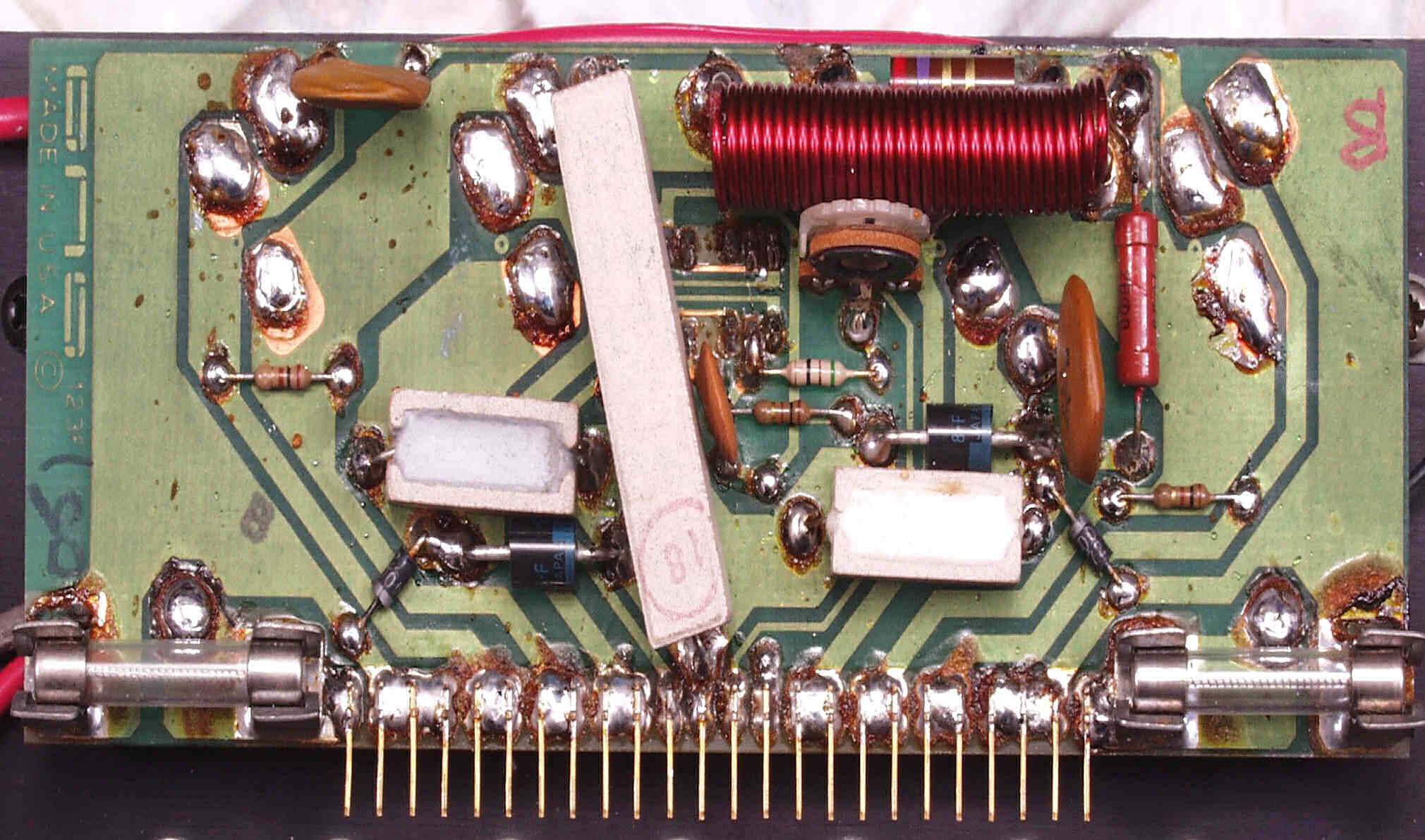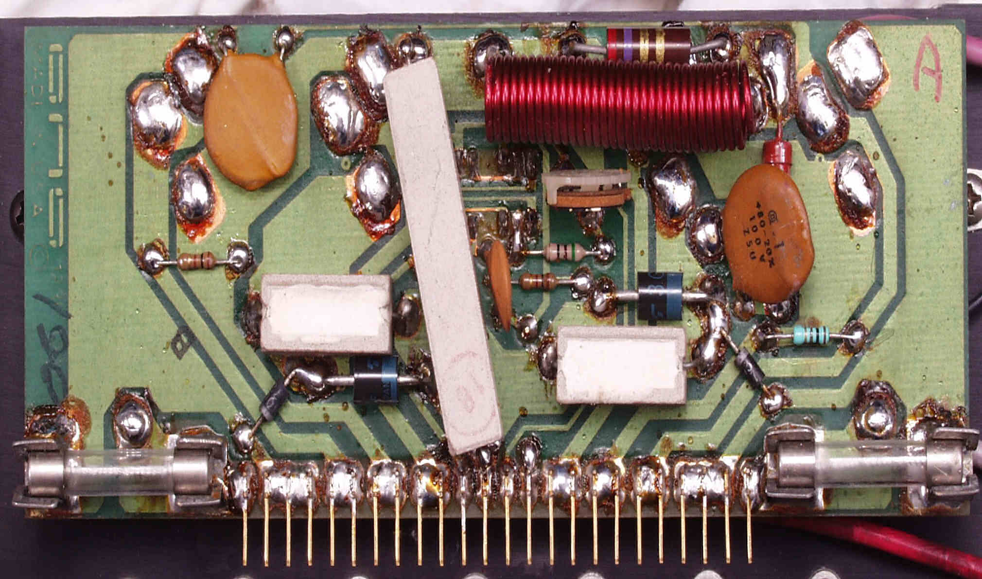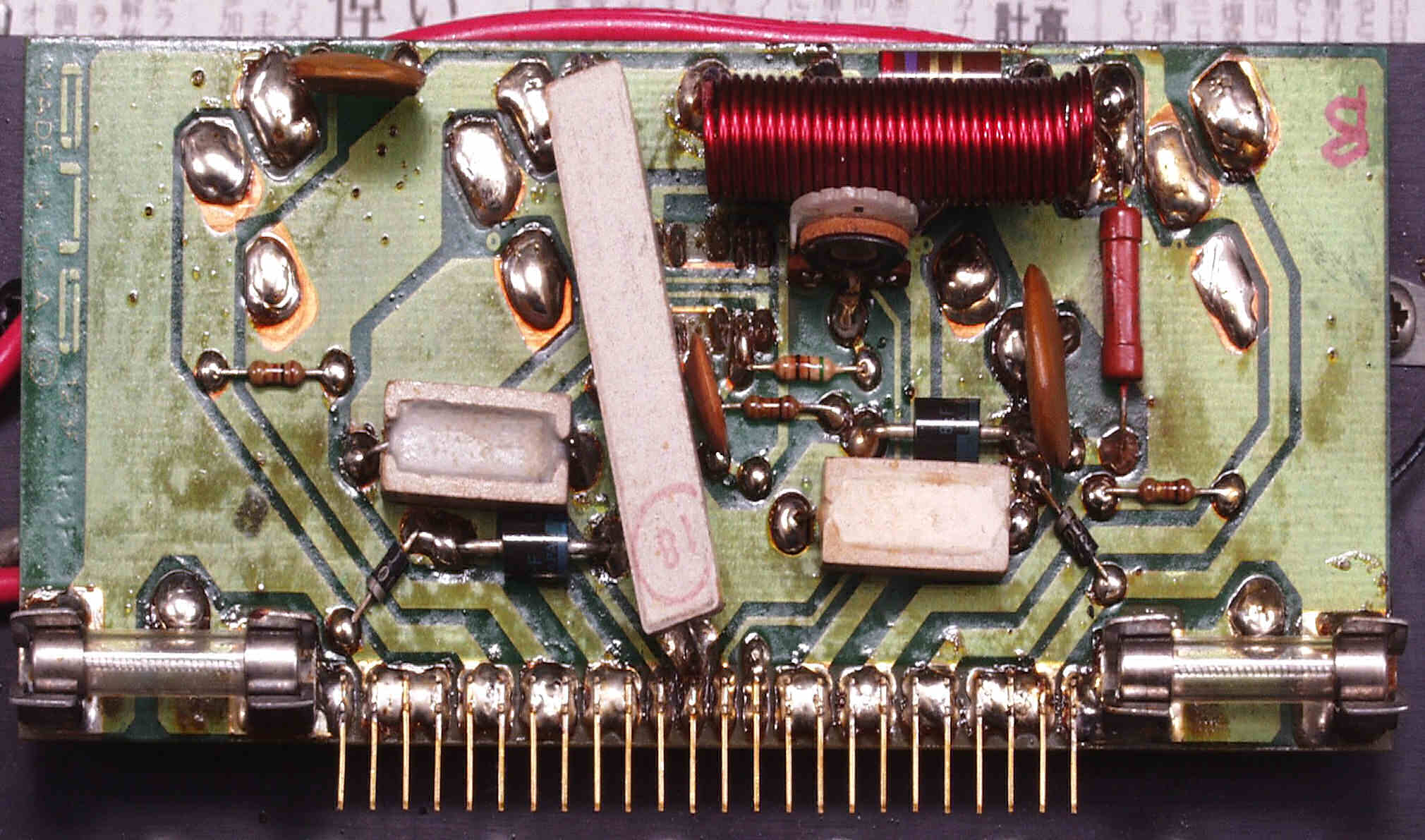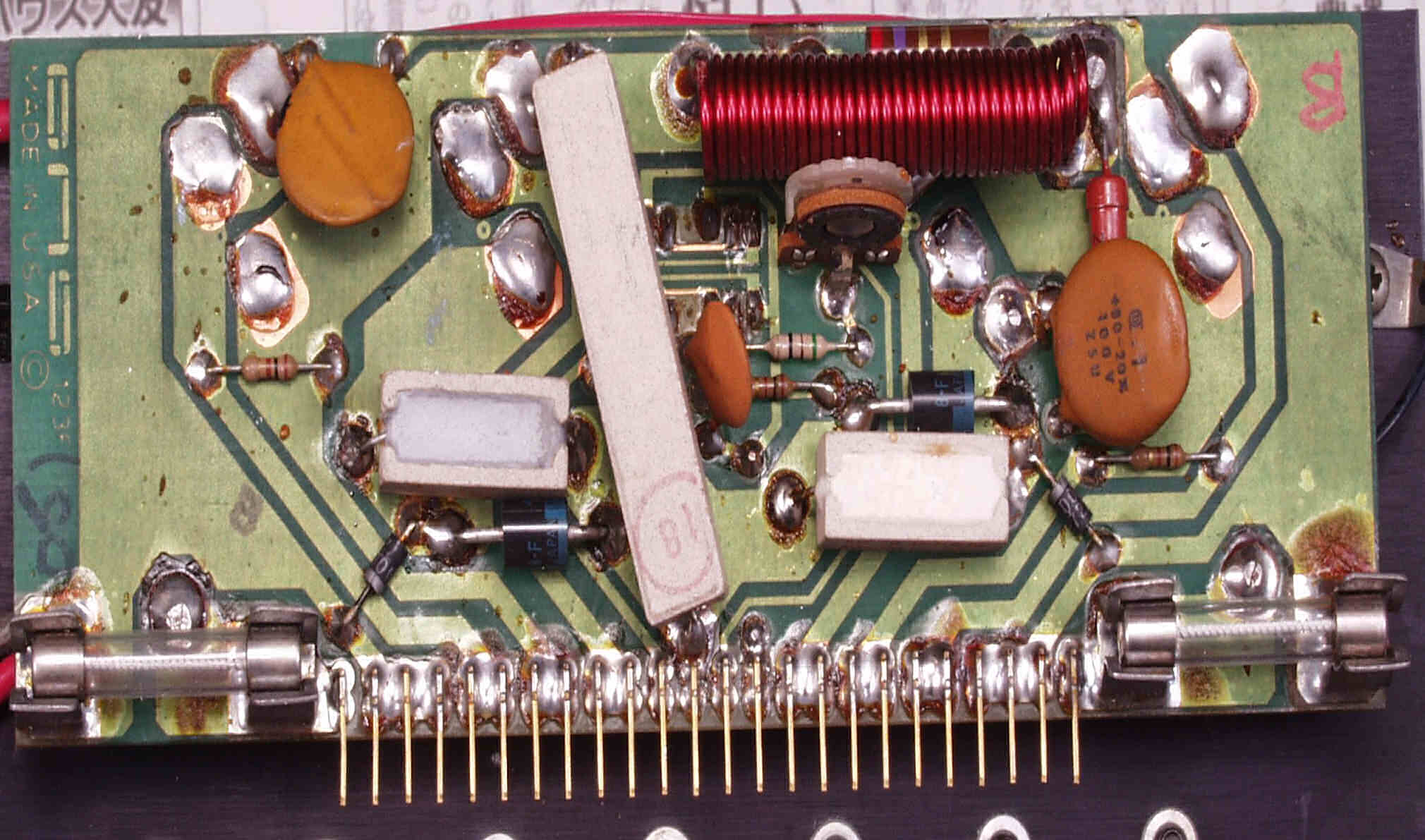 | C54. 修理前 終段TR(トランジスタ−)B側、短絡事故で焼損し国産に交換されている | ||||||||||||||||||||||||||