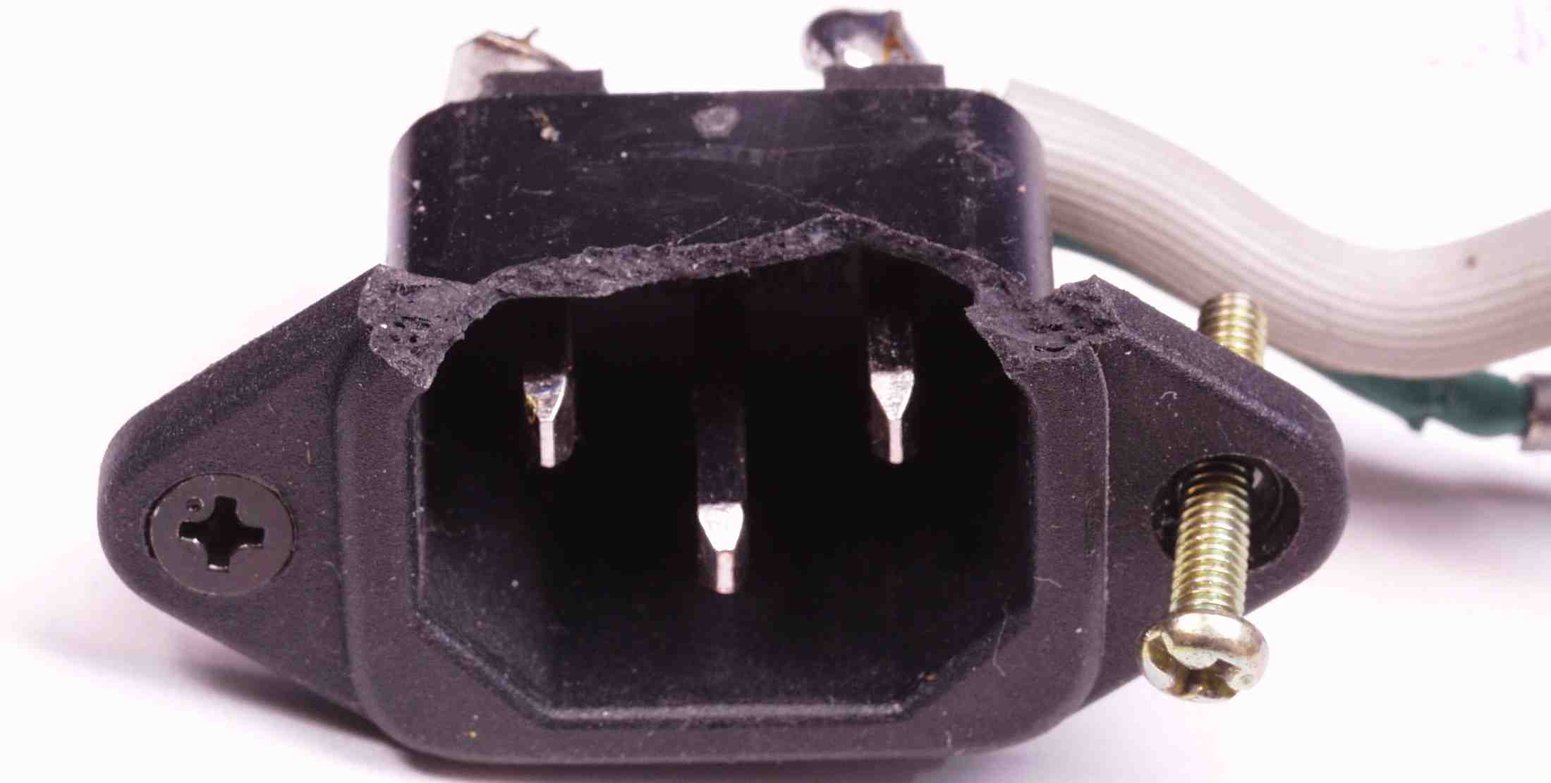 | CB1. 修理前 3Pインレット・プラグ、穴あけの加工技術がへた | ||||||||||||||||||||||||||