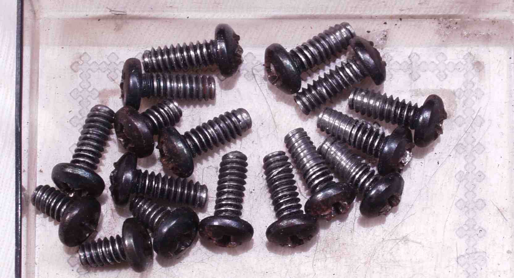 | CB3. 修理中 3Pインレット・プラグ、使用するネジは皿ビス(左)、右は付いていた止めネジ | ||||||||||||||||||||||||||