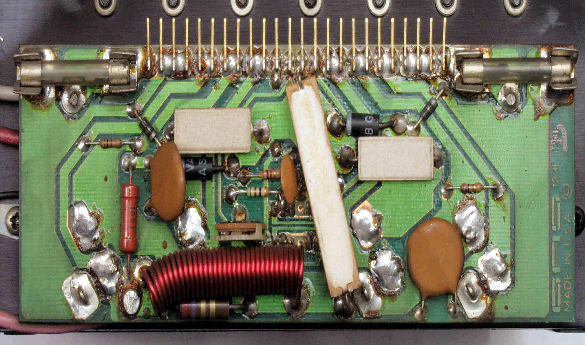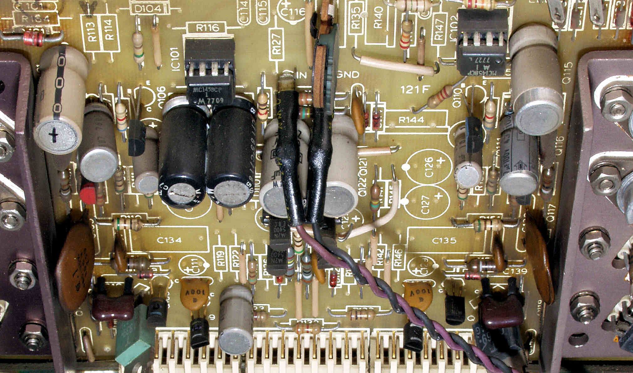 CA5. 修理後 VU−AMP基板 電解コンデンサ−4個交換(高いノンポール電解コンデンサーを使用したので2個→1個)