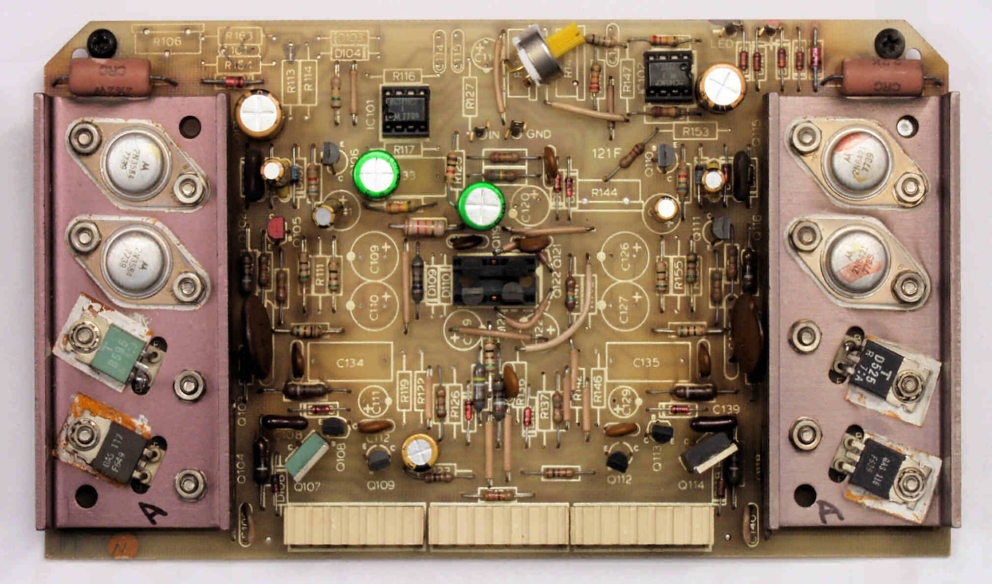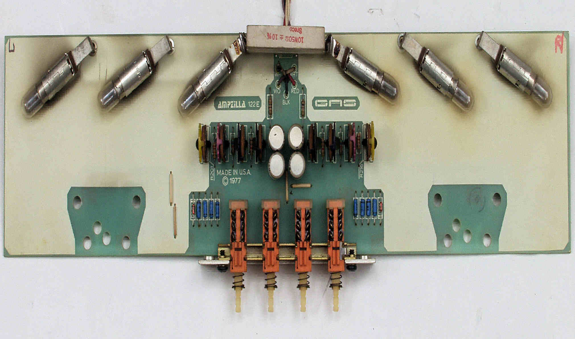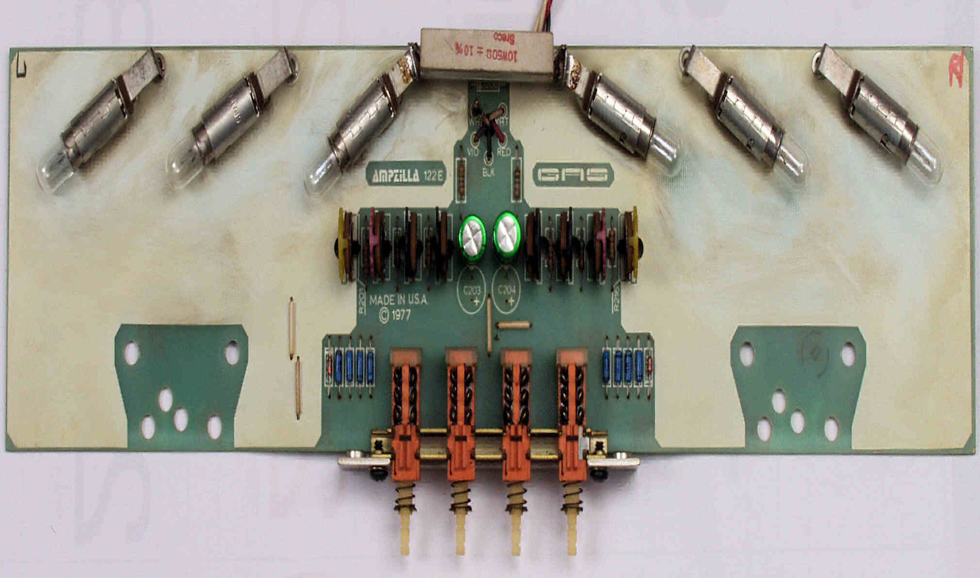 C12. 修理後 A側−AMP基板 電解コンデンサ−7個交換(高いノンポール電解コンデンサーを使用したので2個→1個)、
