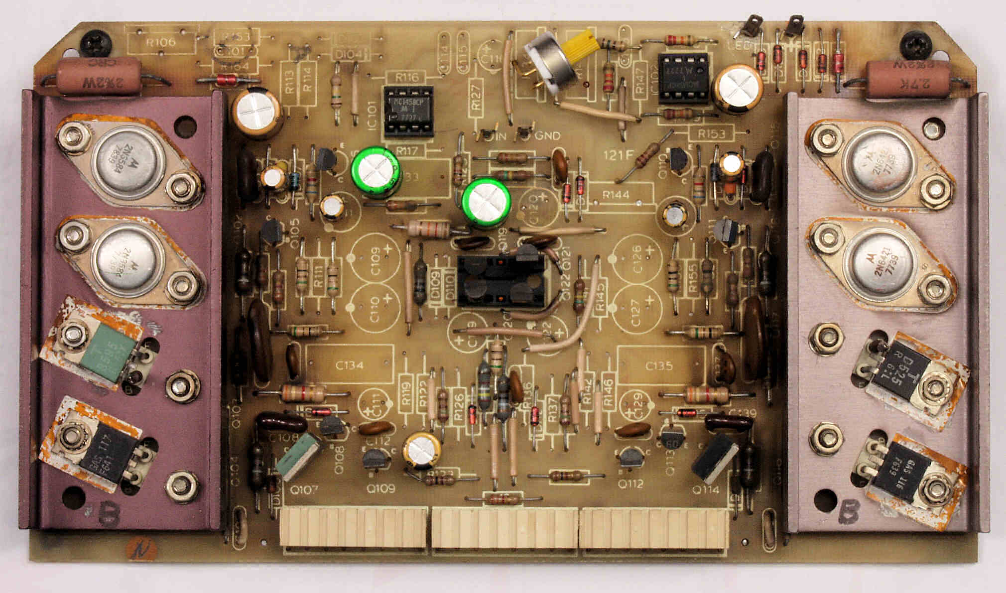 C22. 修理後 B側−AMP基板 電解コンデンサ−7個交換(高いノンポール電解コンデンサーを使用したので2個→1個)、