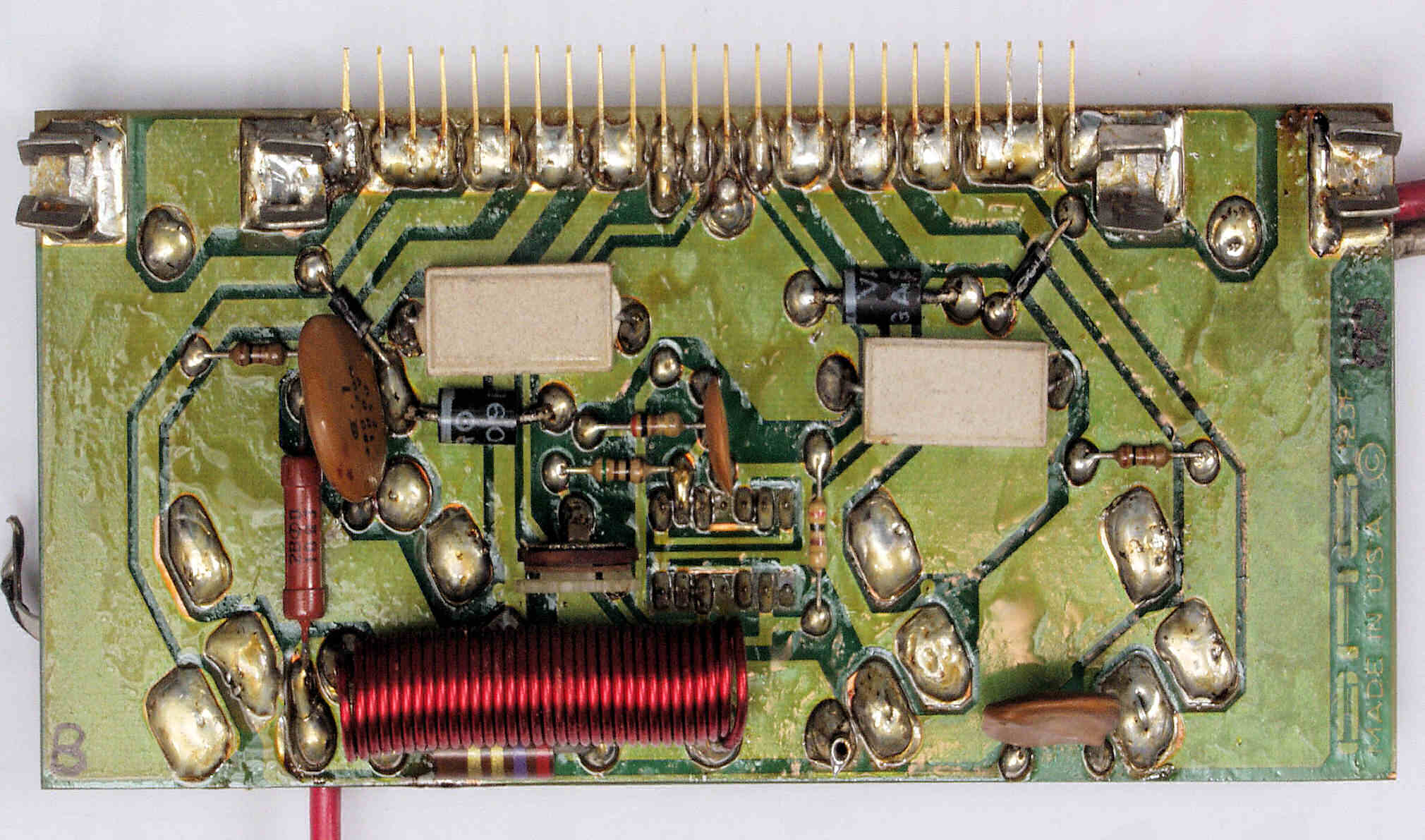 C15. 完成A側−AMP基板裏 不要なフラックスを取り、洗浄し、コート液を塗布する。