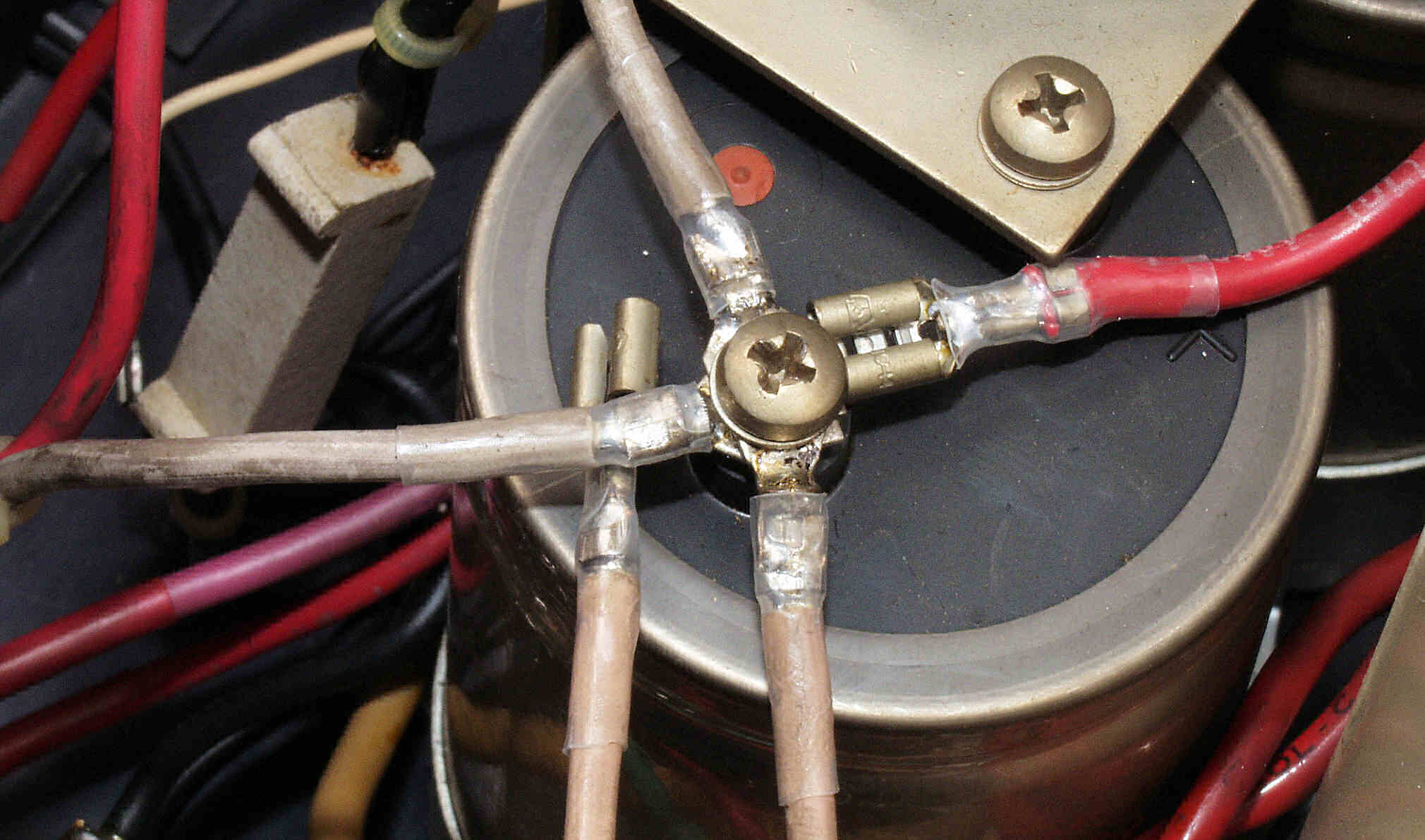C95. 修理中 DC電源配線、ラグ端子は半田を流し込み、熱收縮チューブで絶縁し、補強する。