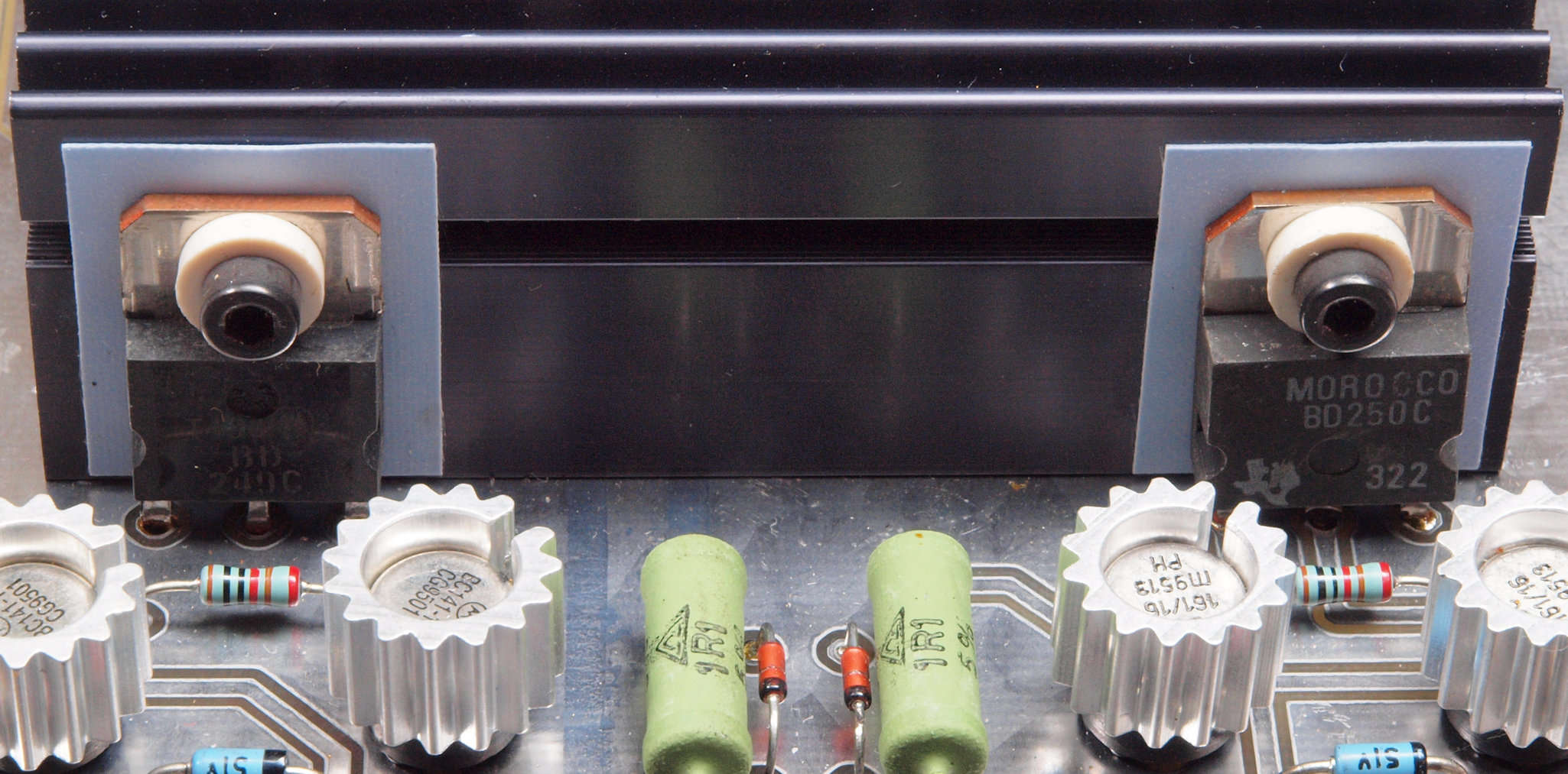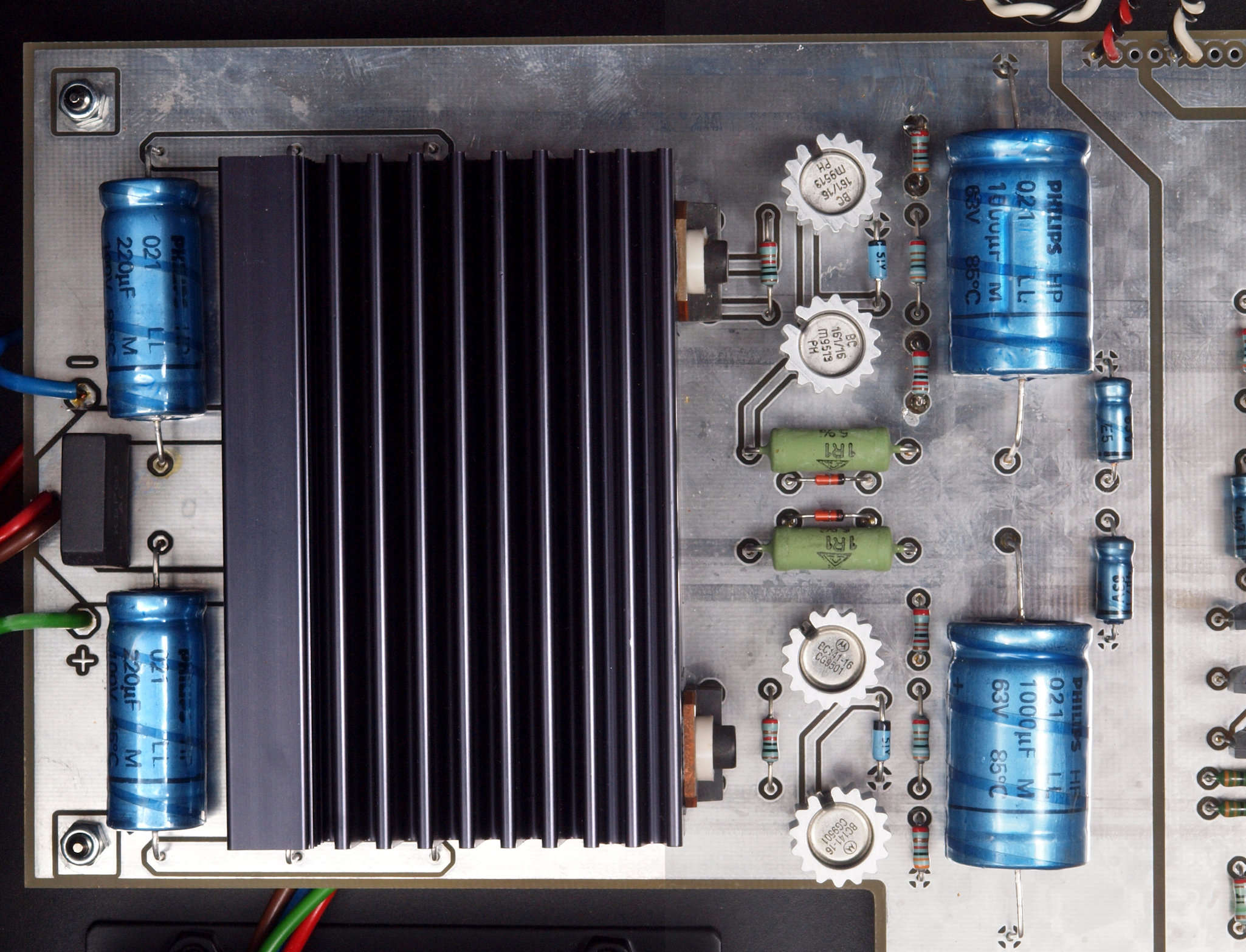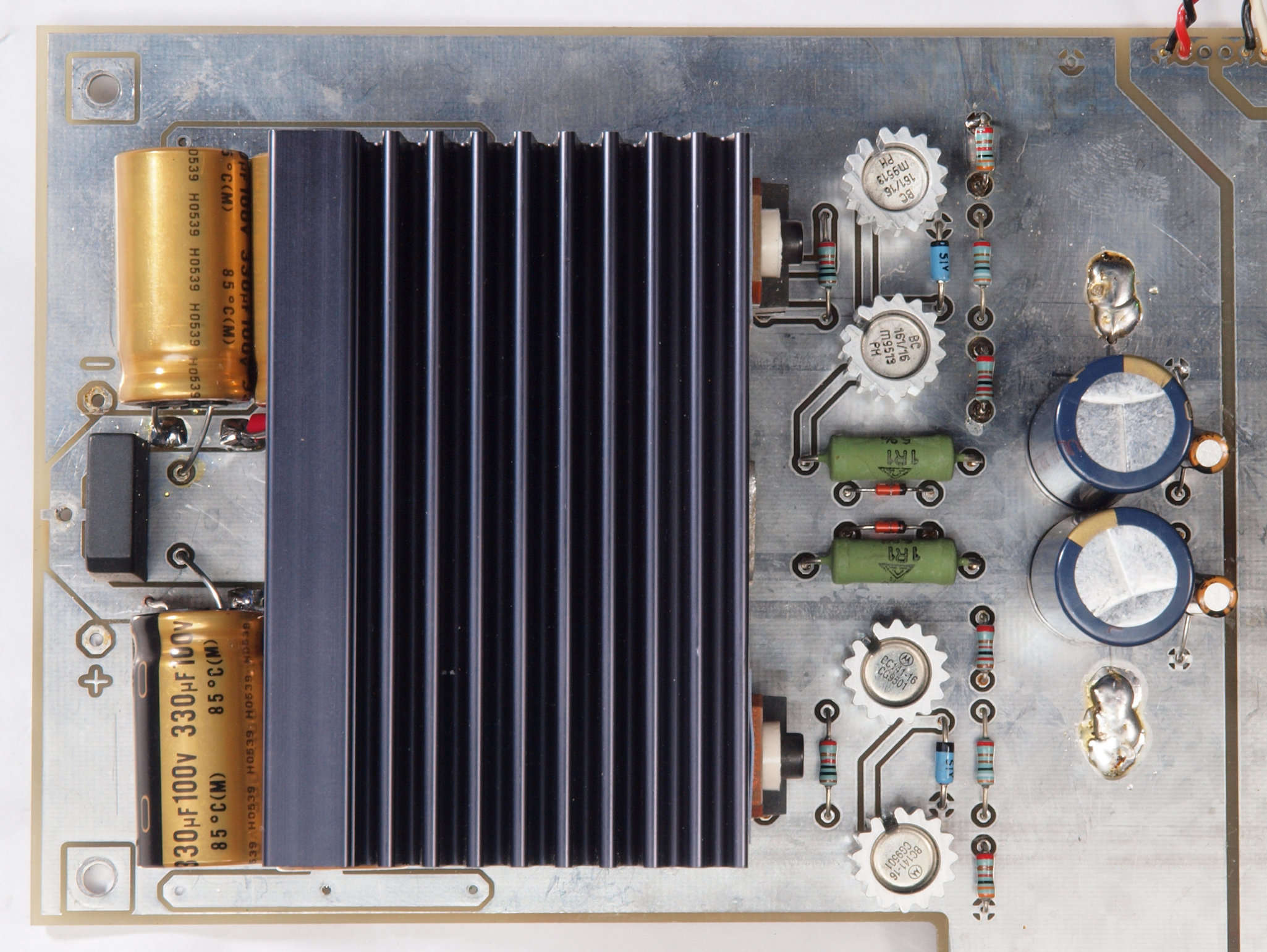 | C51. 修理前 電源基板、左側の220μ/100WVは放熱器の下にも4個有る。 | ||||||||||||||||||||||||||||||||||||