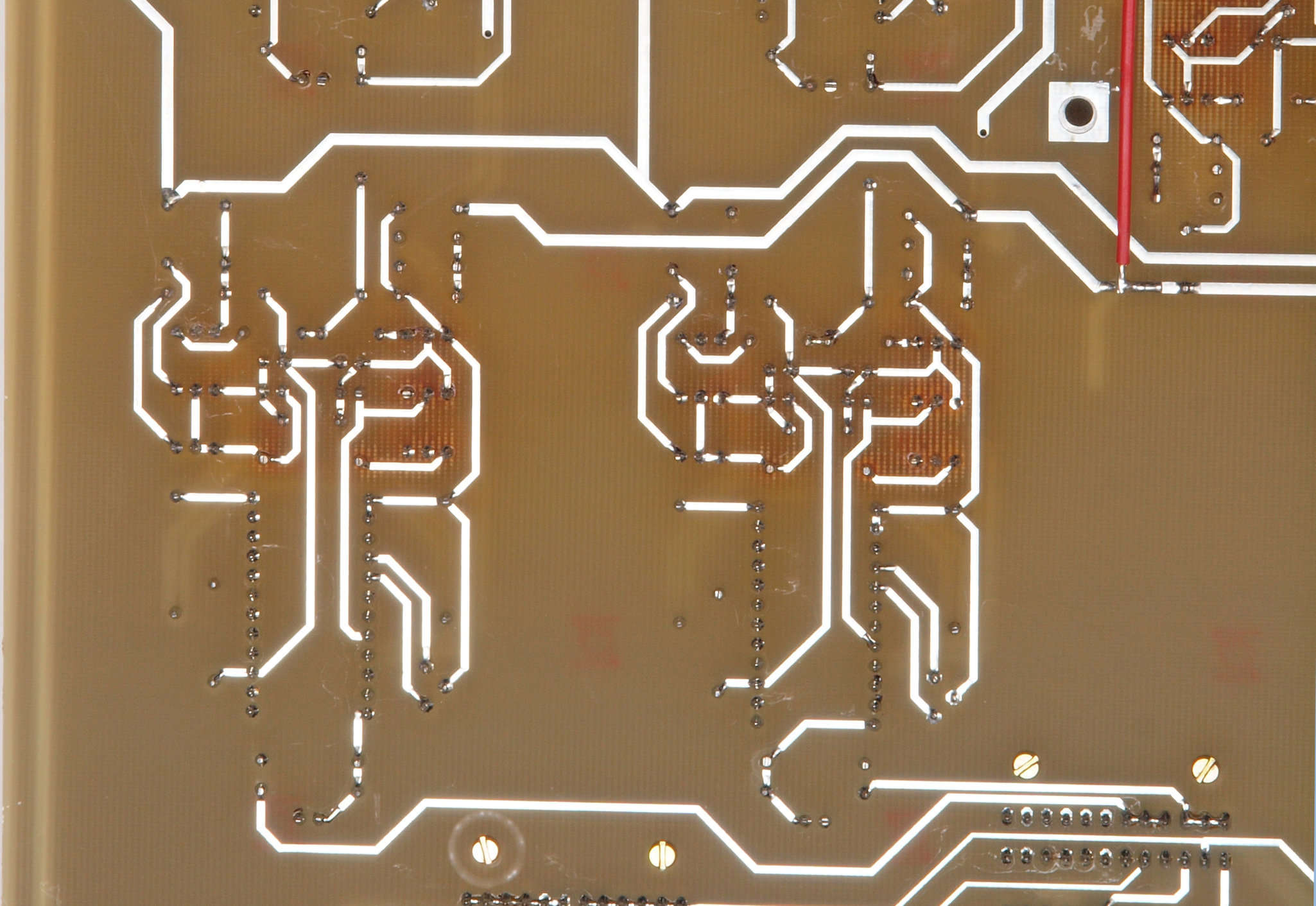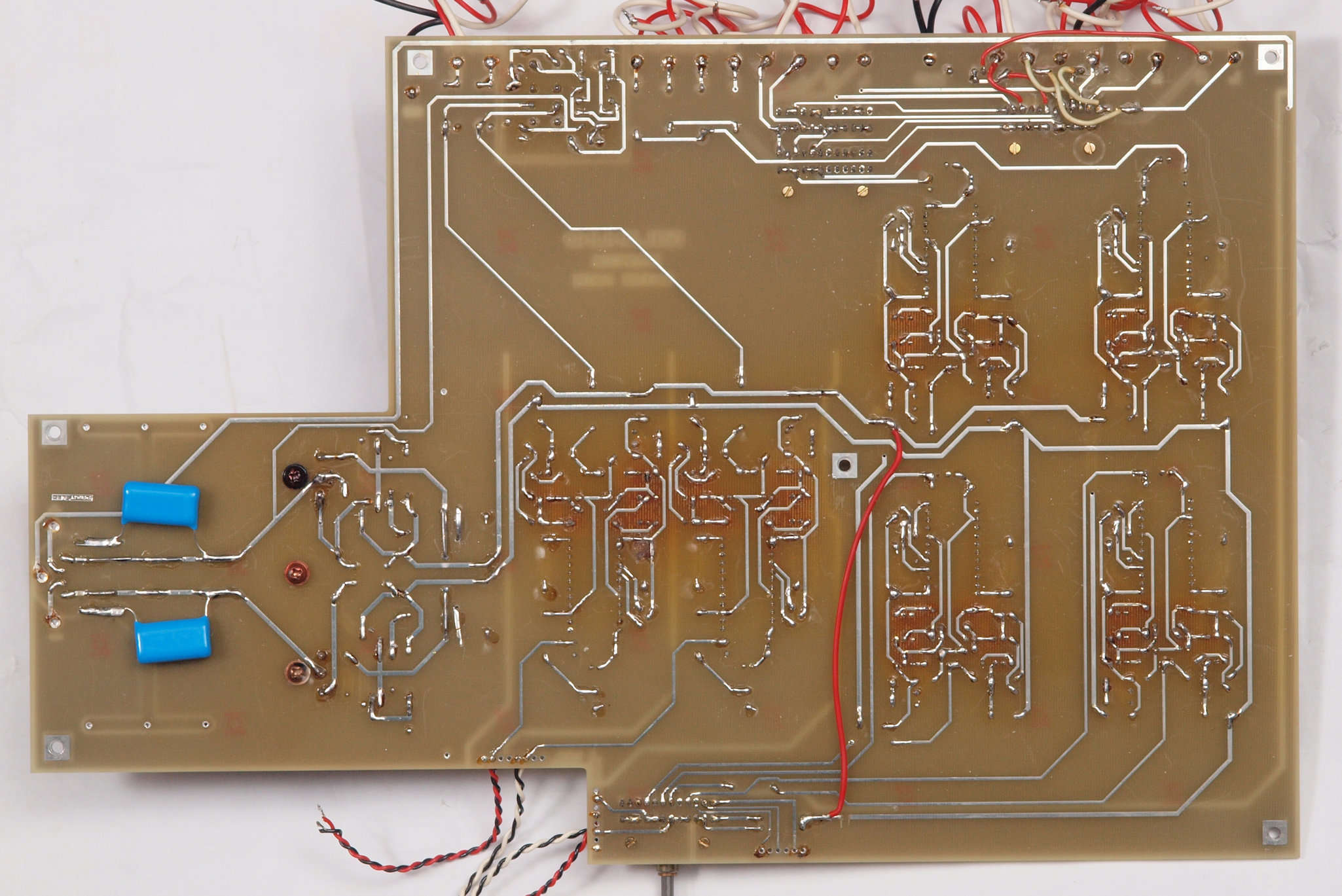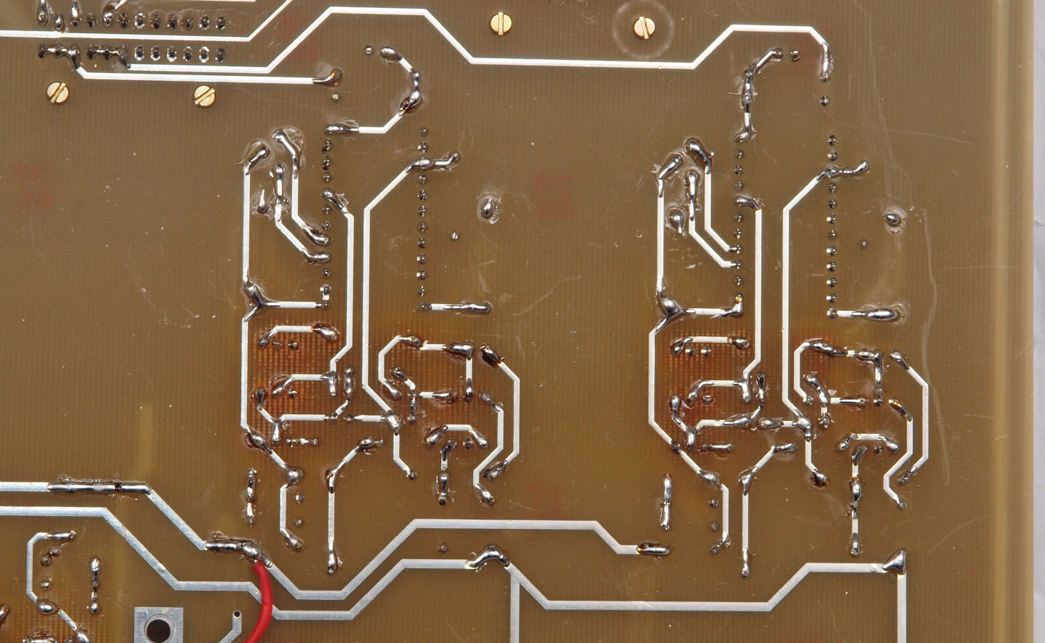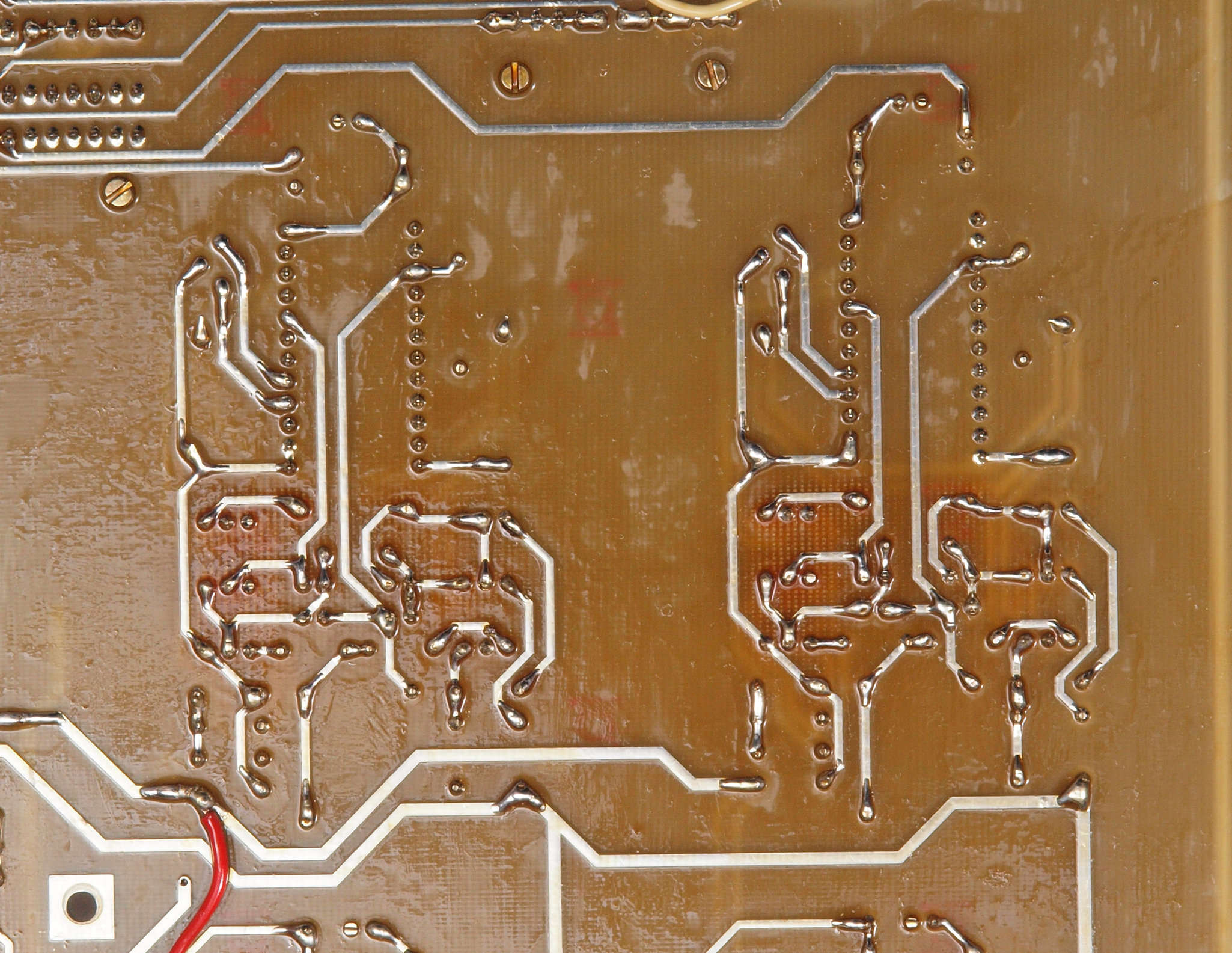 | C34. 修理(半田補正)後 入力アンプ後段基板裏。 全ての半田をやり修す。 | ||||||||||||||||||||||||||||||||||||