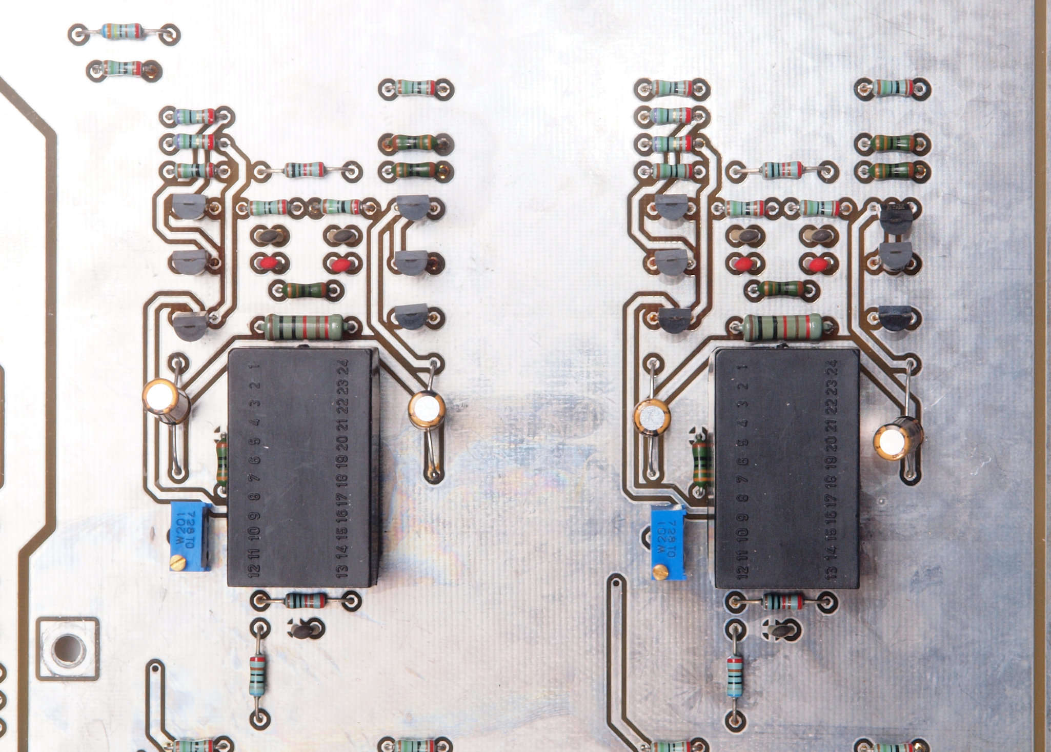 | C24. 修理(半田補正)後 入力アンプ前段基板裏。 全ての半田をやり修す。 | ||||||||||||||||||||||||||||||||||||