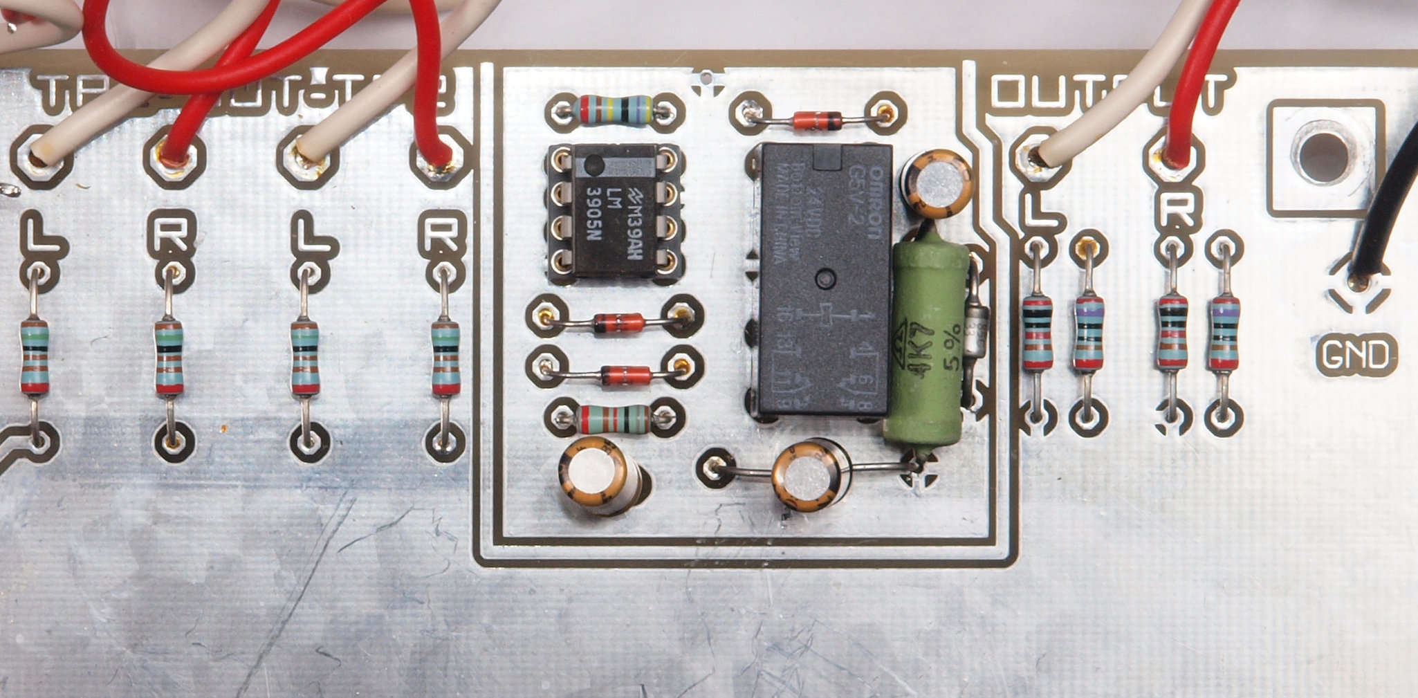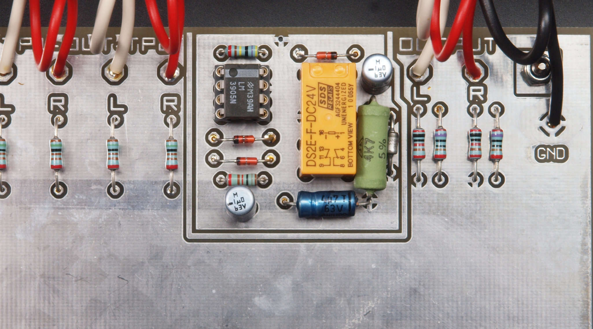 | C45. 完成出力遅延基板裏。 余分なフラックスを落として、コート液を塗る。 | ||||||||||||||||||||||||||||||||||||
