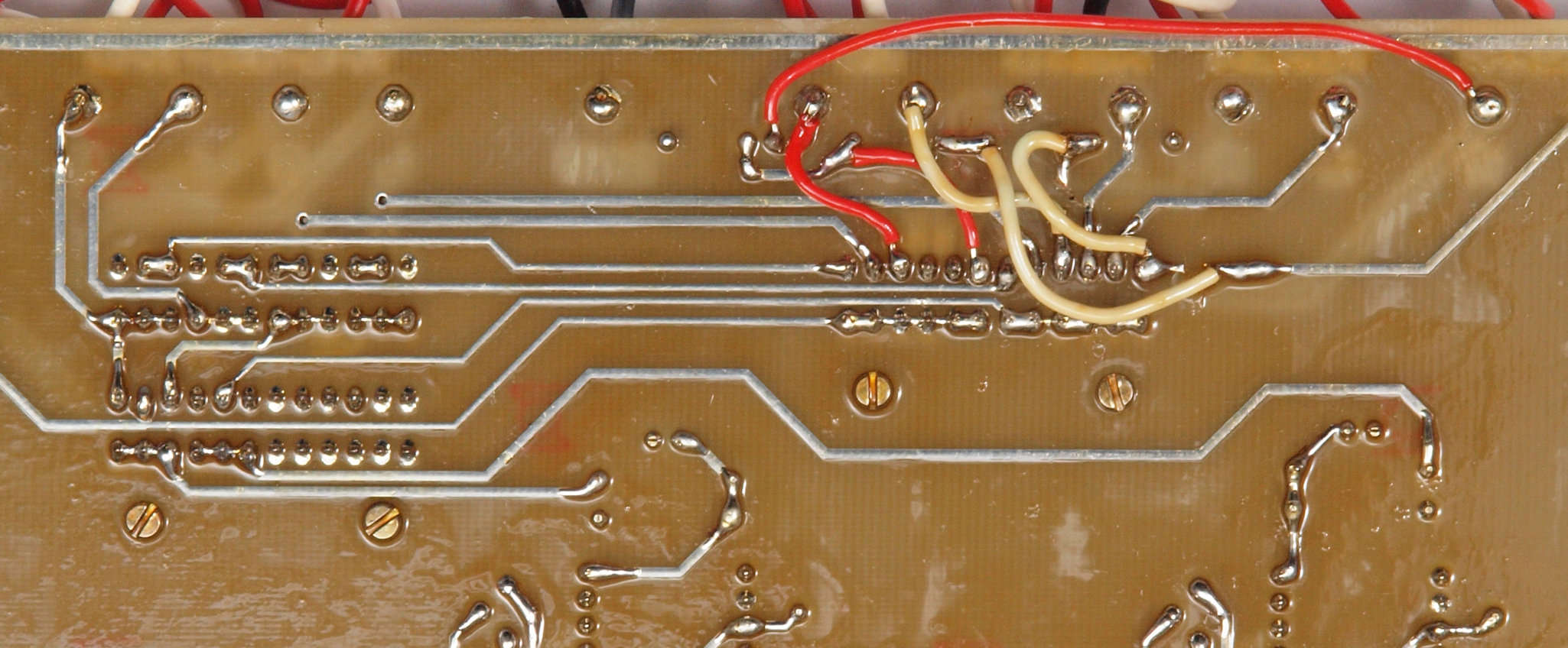| C44. 修理(半田補正)後 出力遅延基板裏。 全ての半田をやり修す。 | ||||||||||||||||||||||||||||||||||||