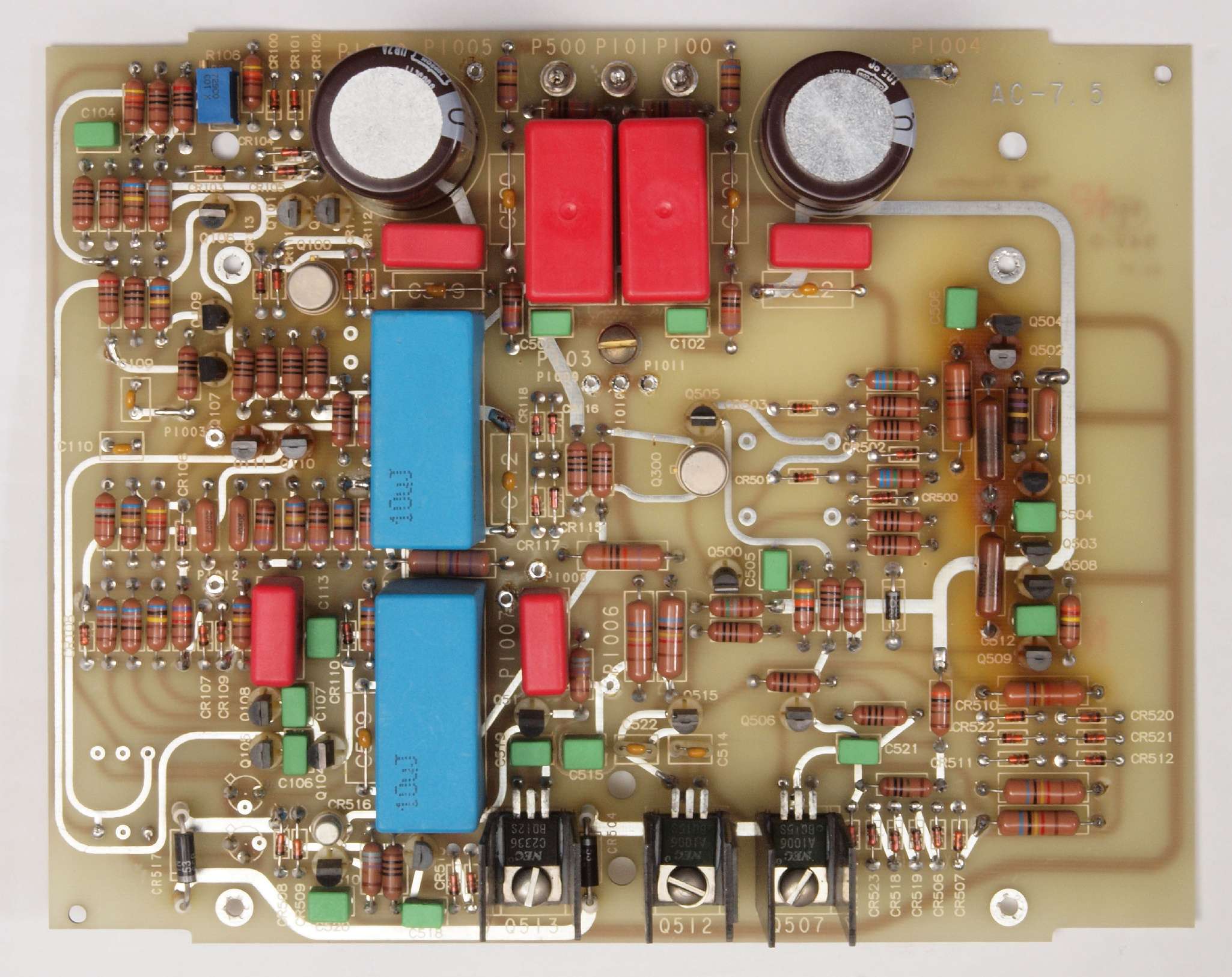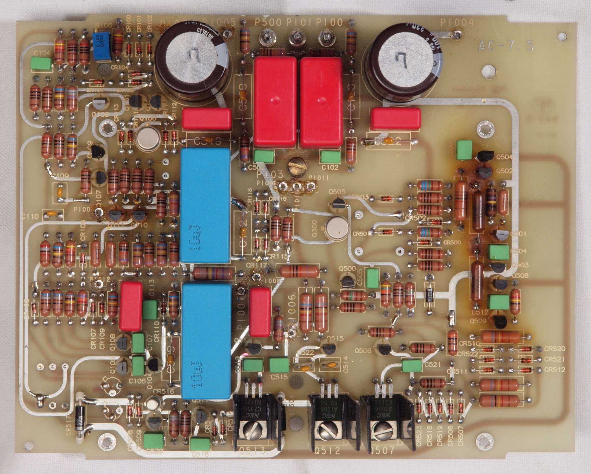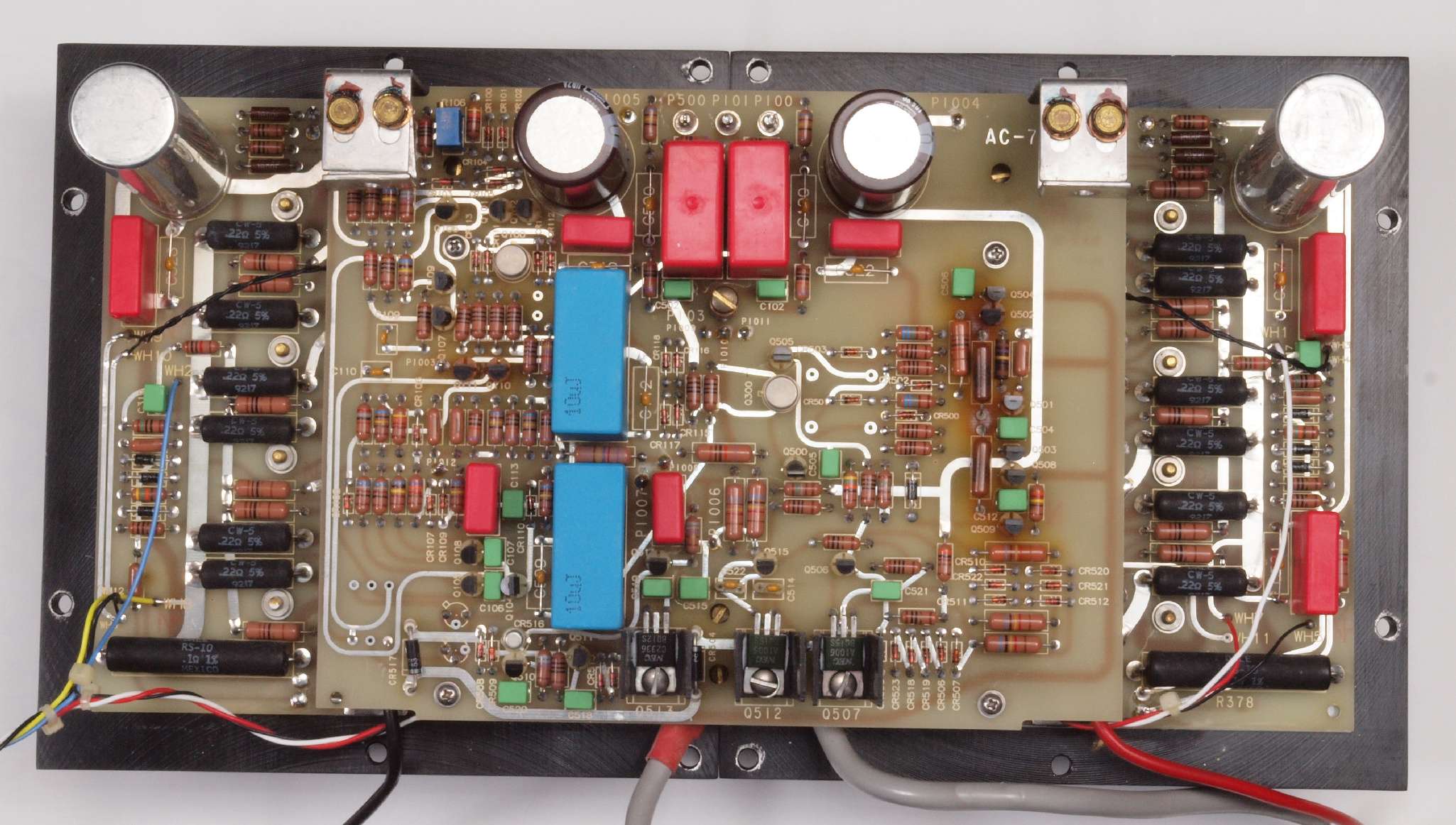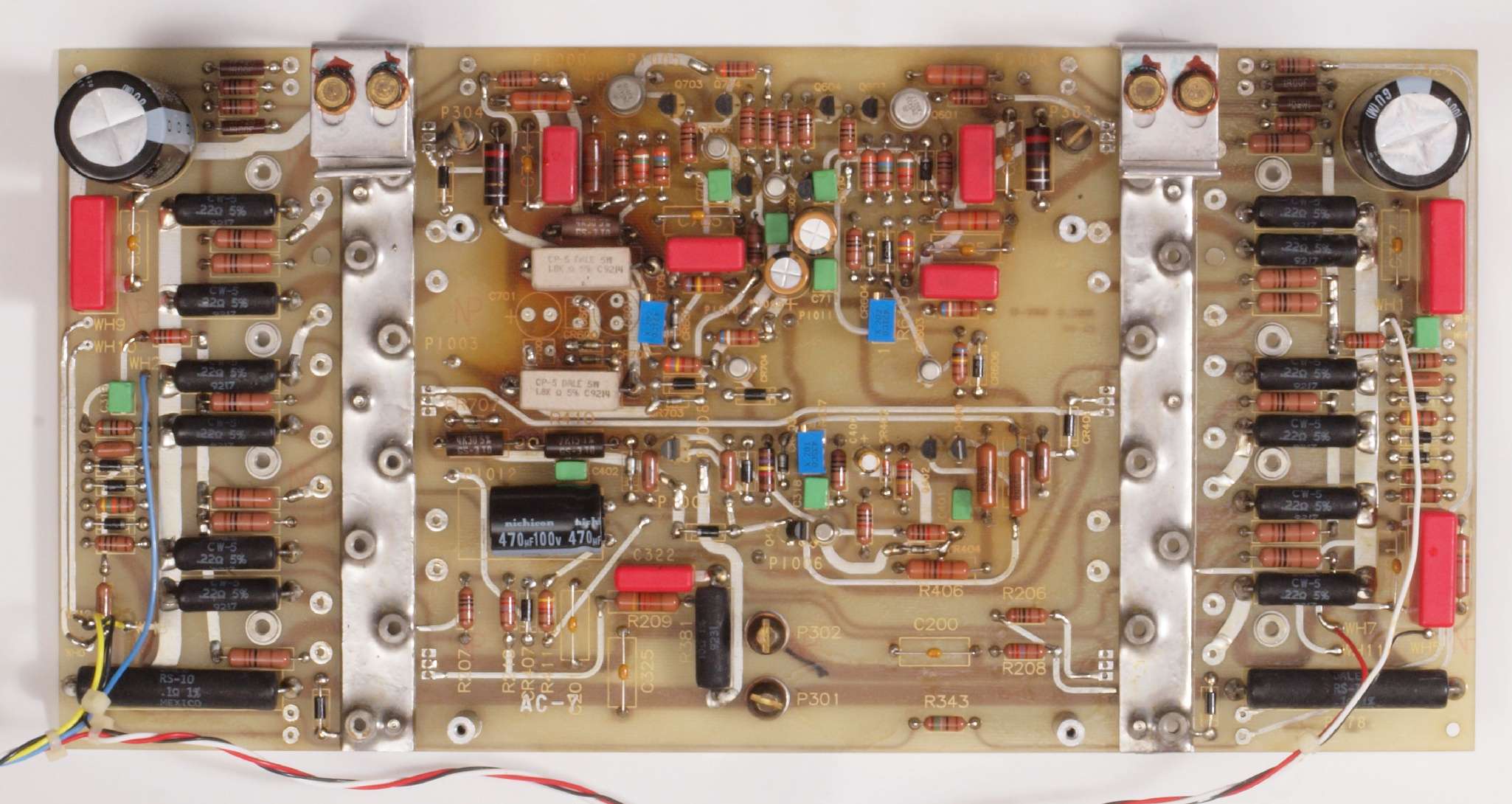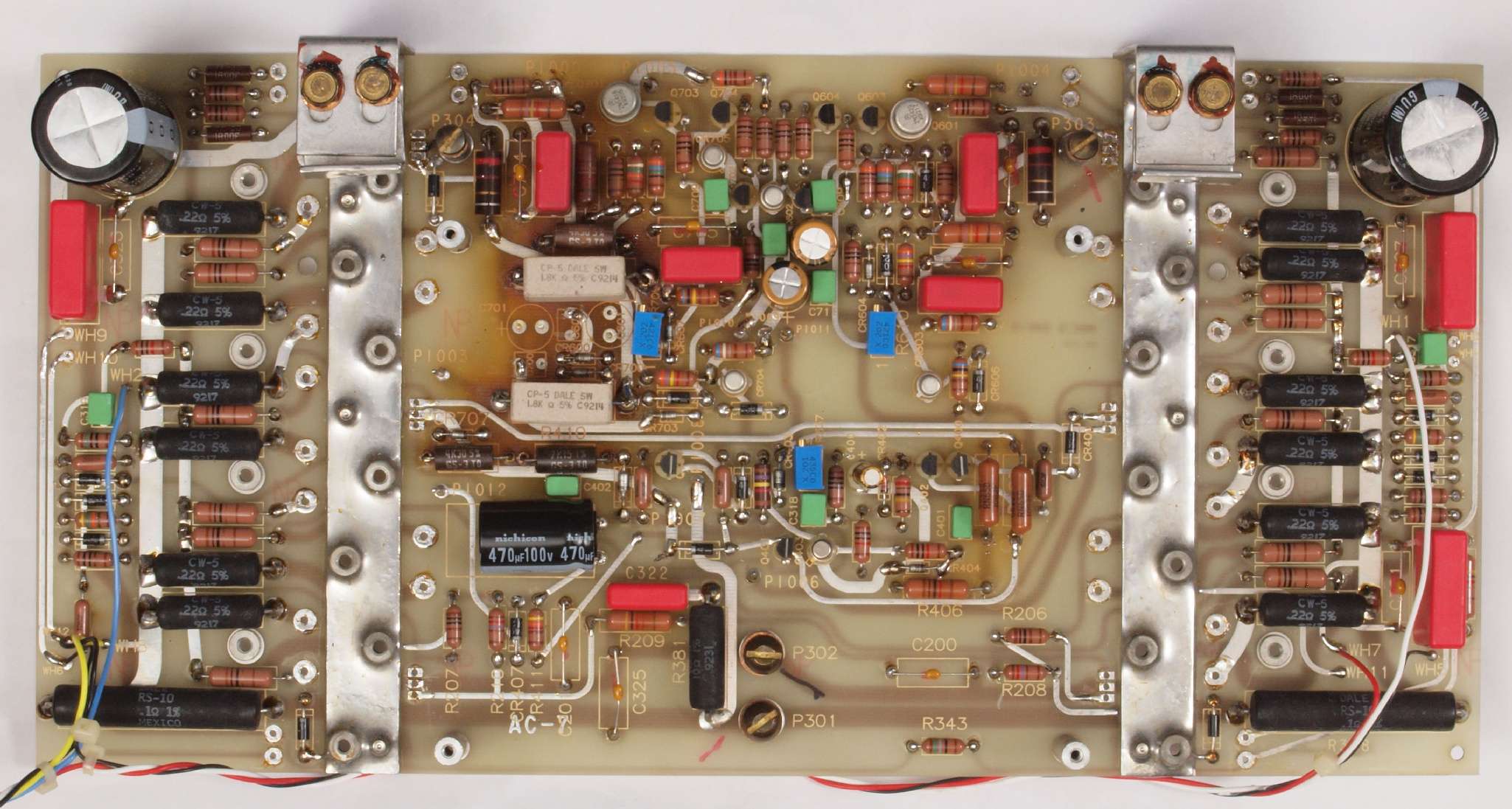 C76. 修理後 左側終段基板。 電解コンデンサー5個交換。