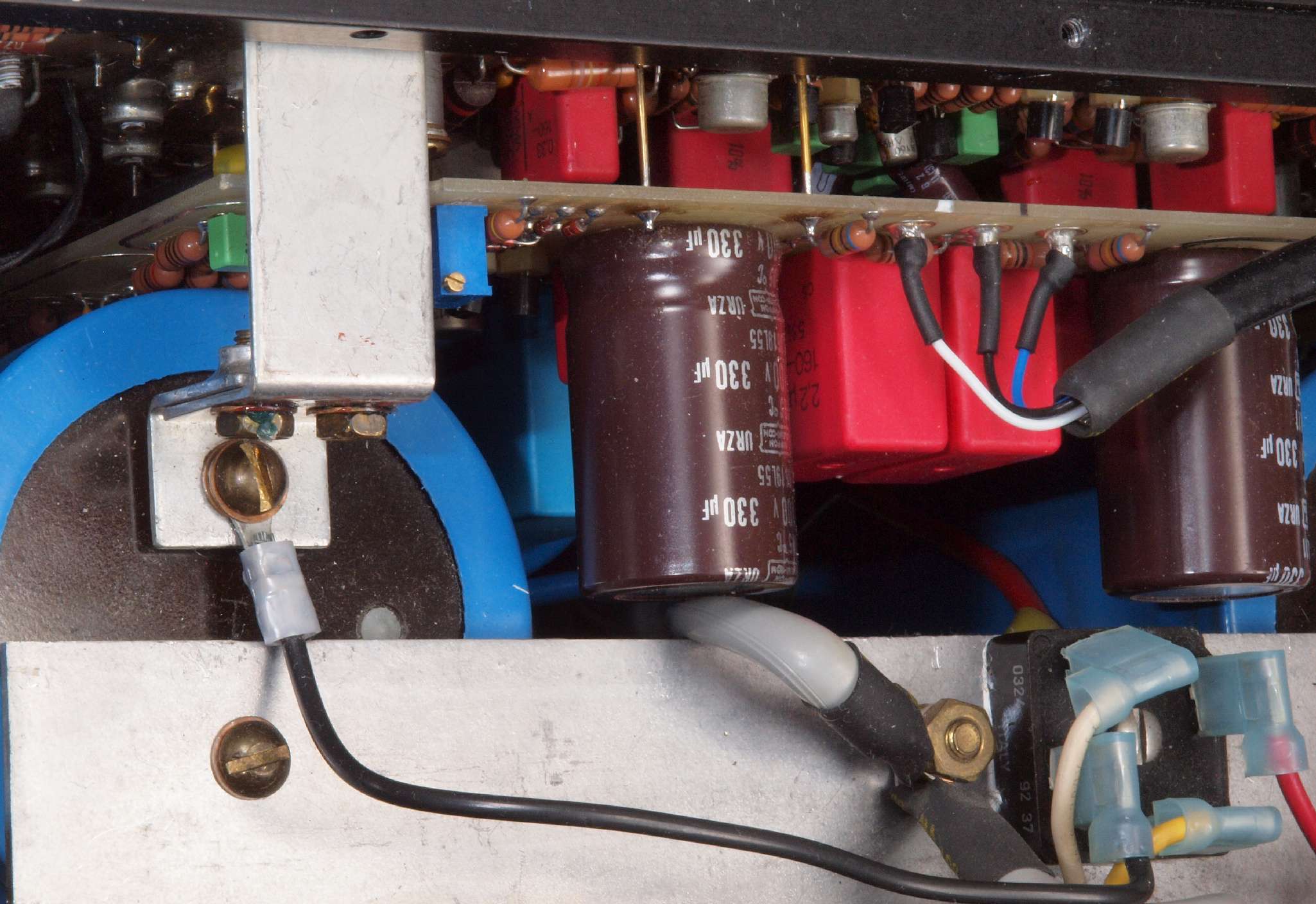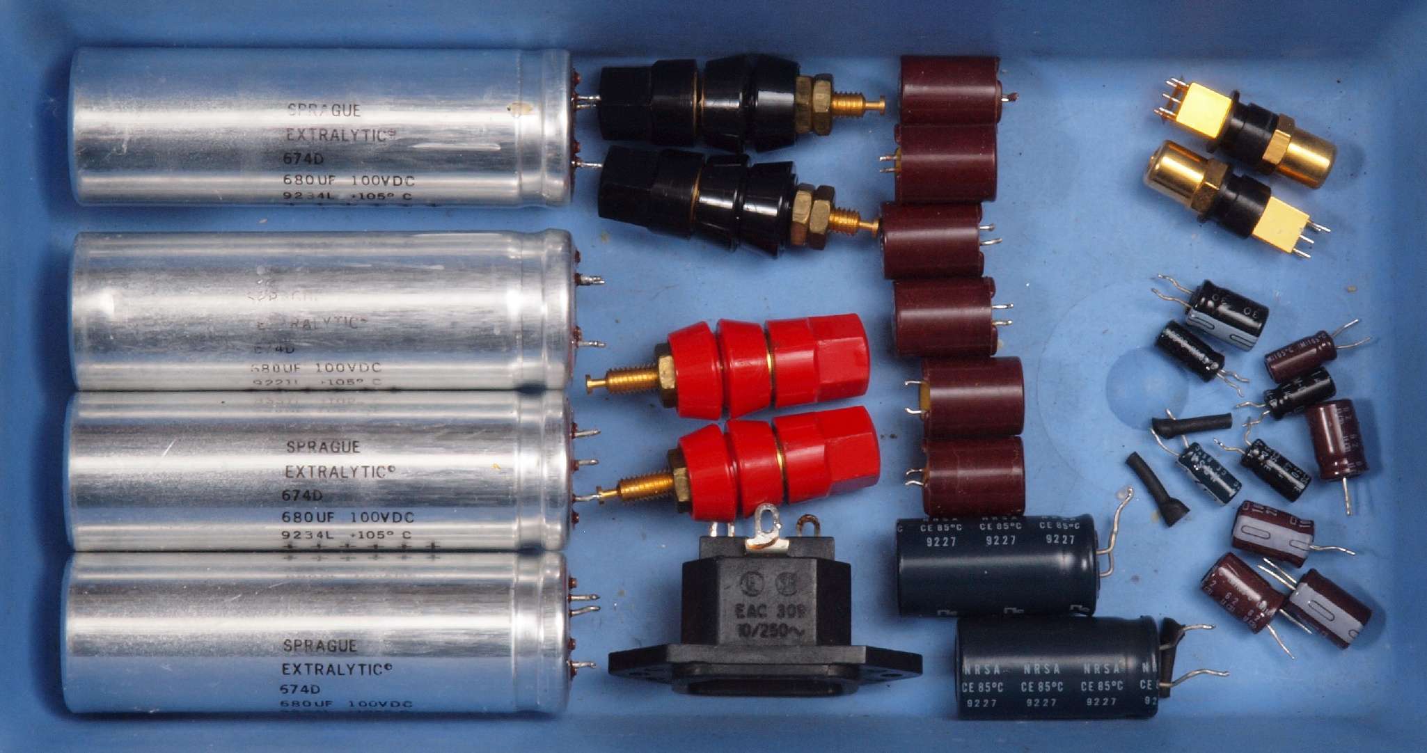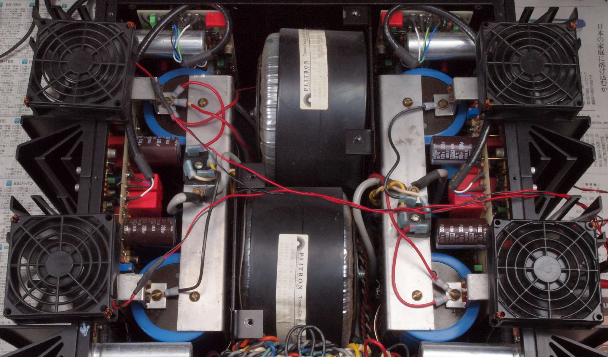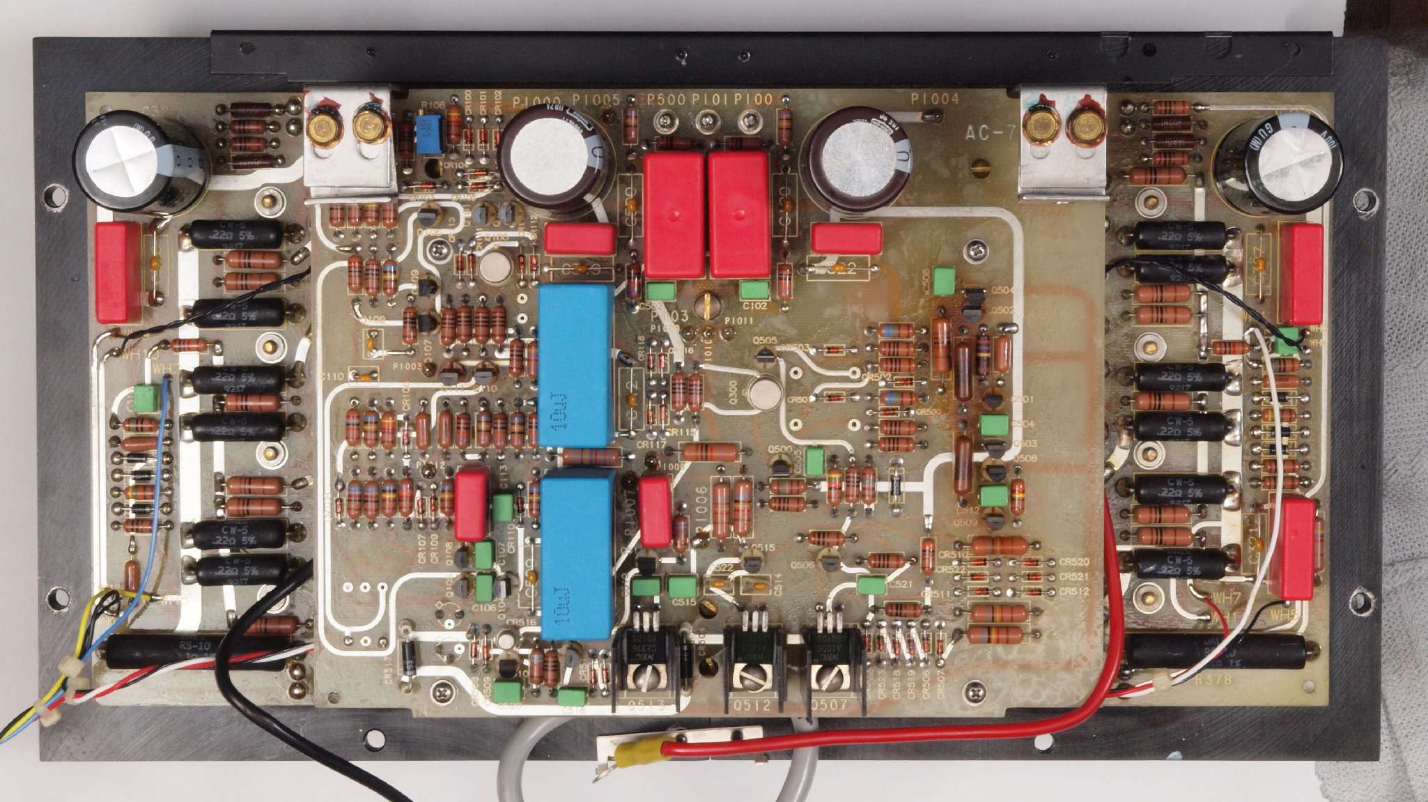SP接続端子交換には、左右のAMP基板+後ろ側電解コンデンサー2個を外さないと交換不可。
