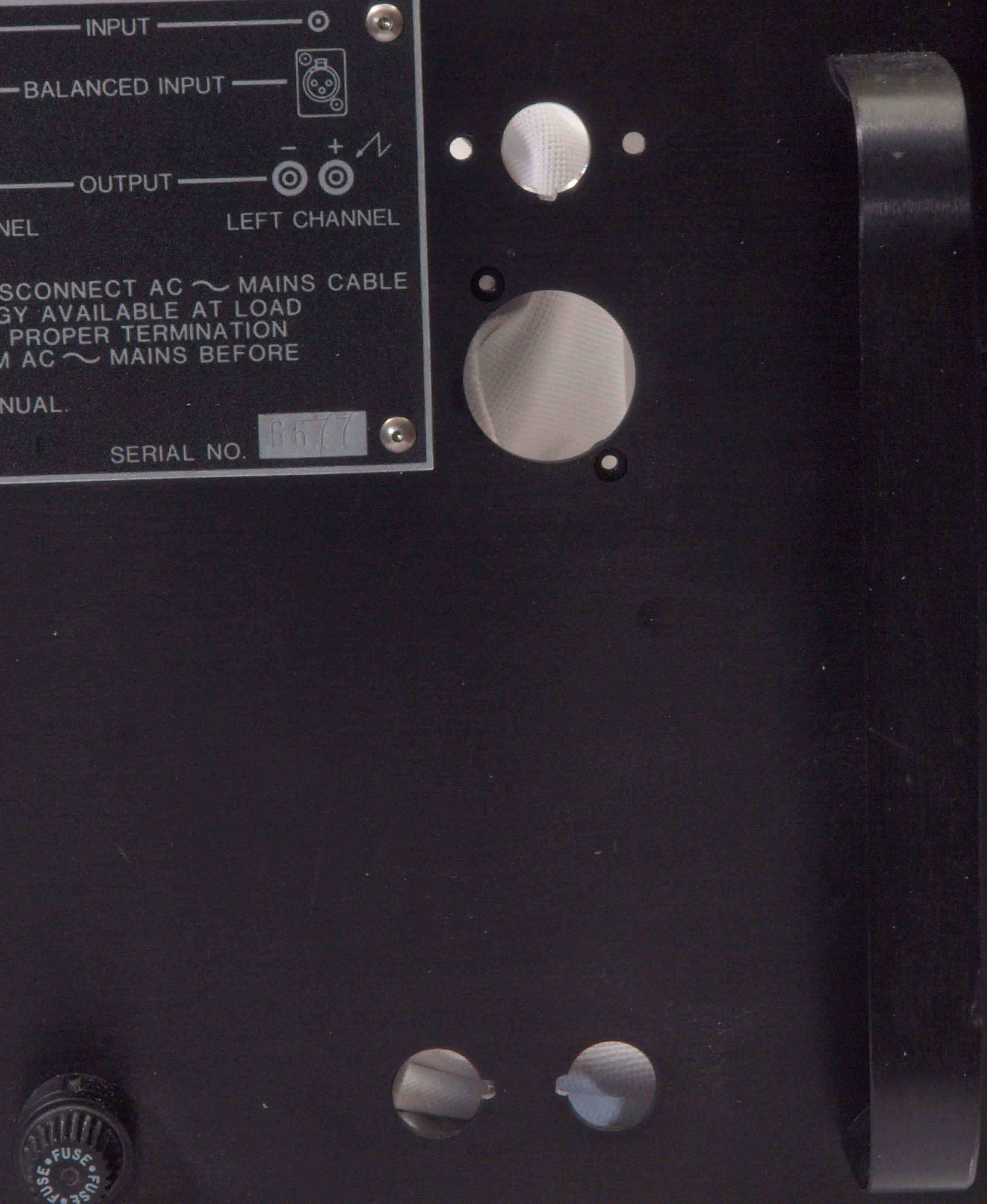 C82. 修理中 後ろパネル左側入力RCA端子、SP接続端子。穴加工。