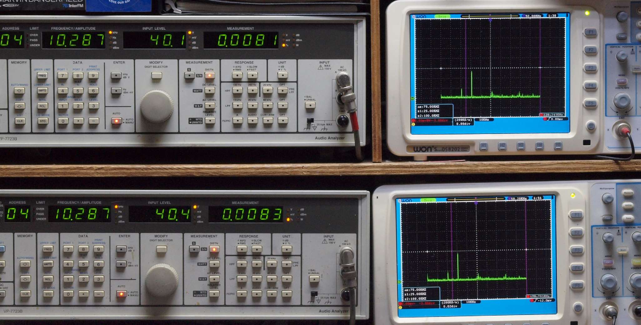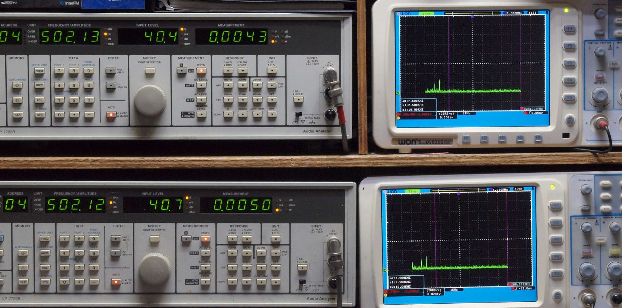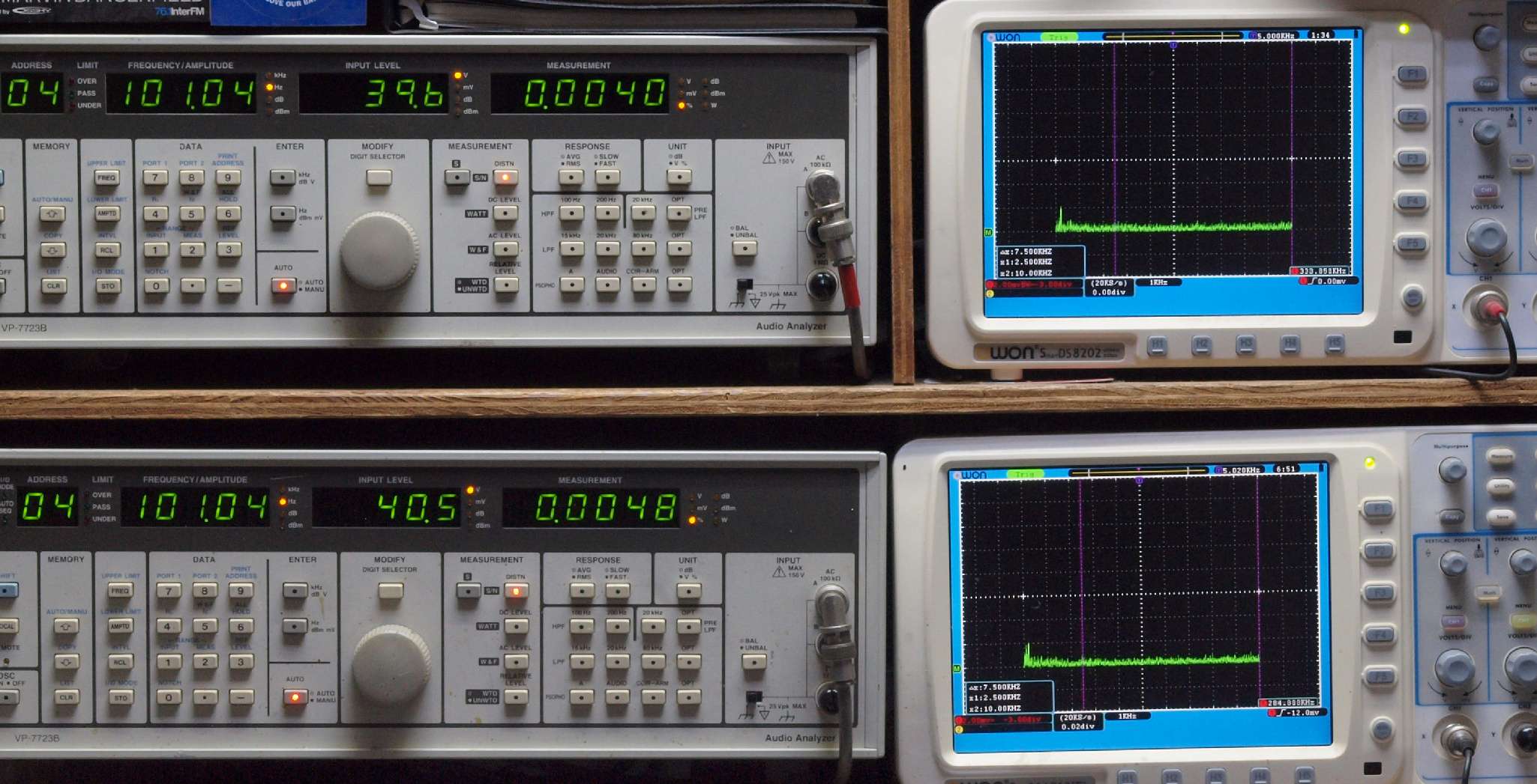 よって、ダイアル設定出力レベルより低くなります。測定機器の仕様や整備の様子はこちら、「VP−7723B」「VP−7201A」。 FFT画面の見方はこちら。