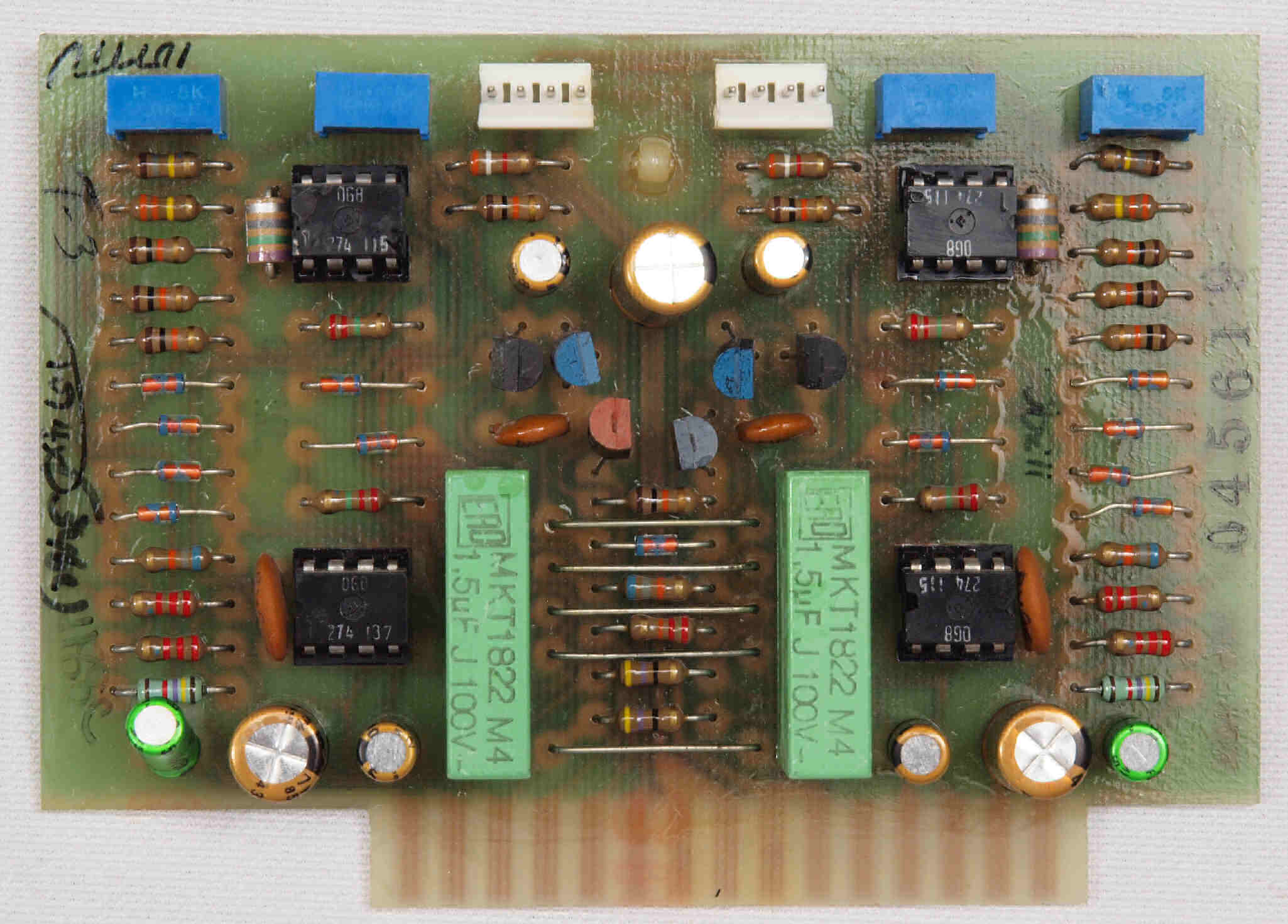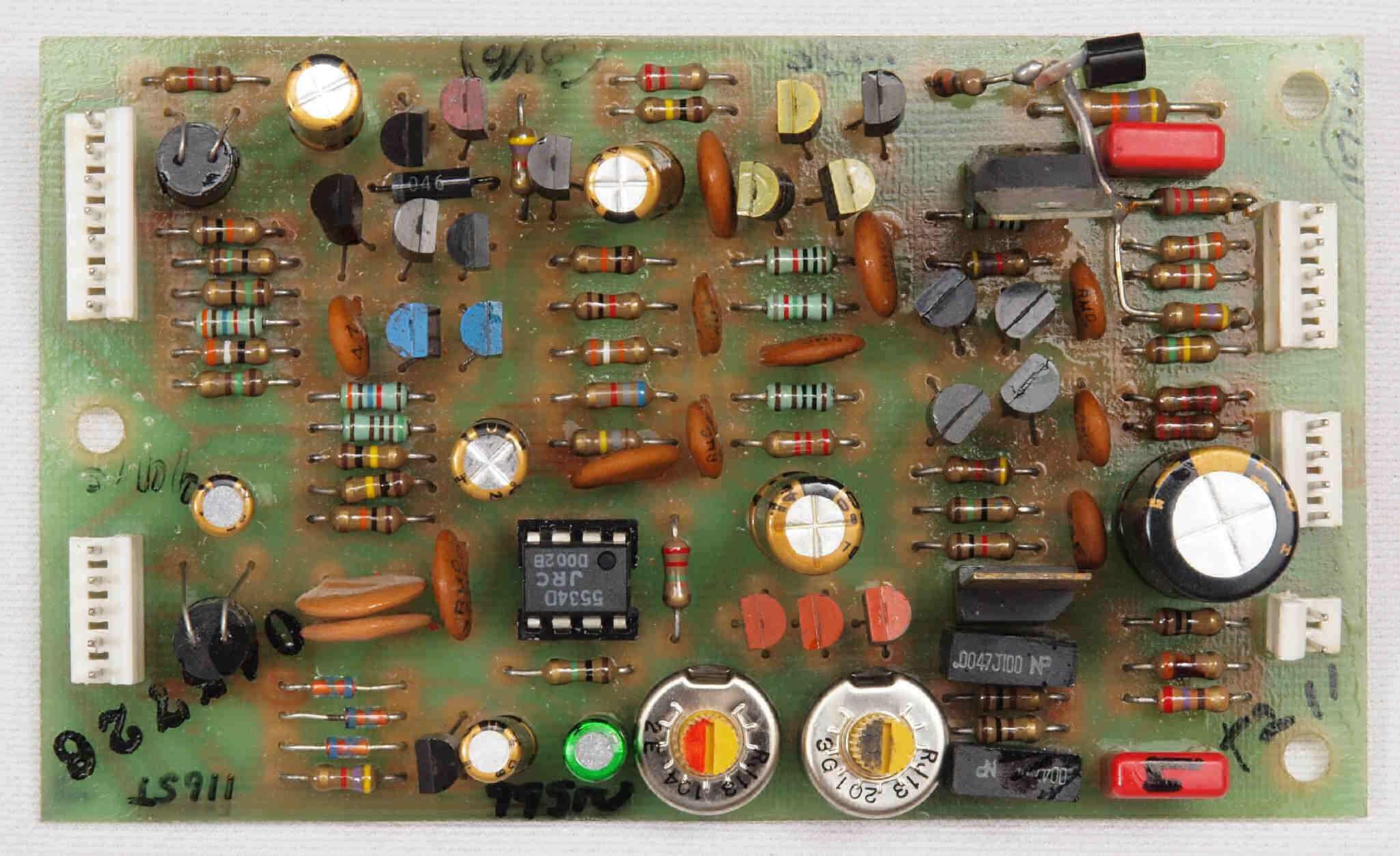 C22. 修理後 L−AMP基板 TR(トランジスター)4個、OP−AMP、電解コンデンサー9個、半固定VR2個交換
