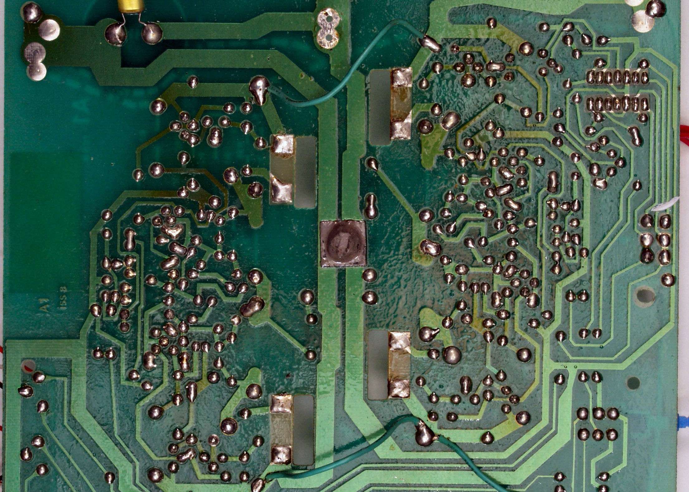 C4D. 修理(半田補正)後 EQ基板裏、 半田を全部やり直す。