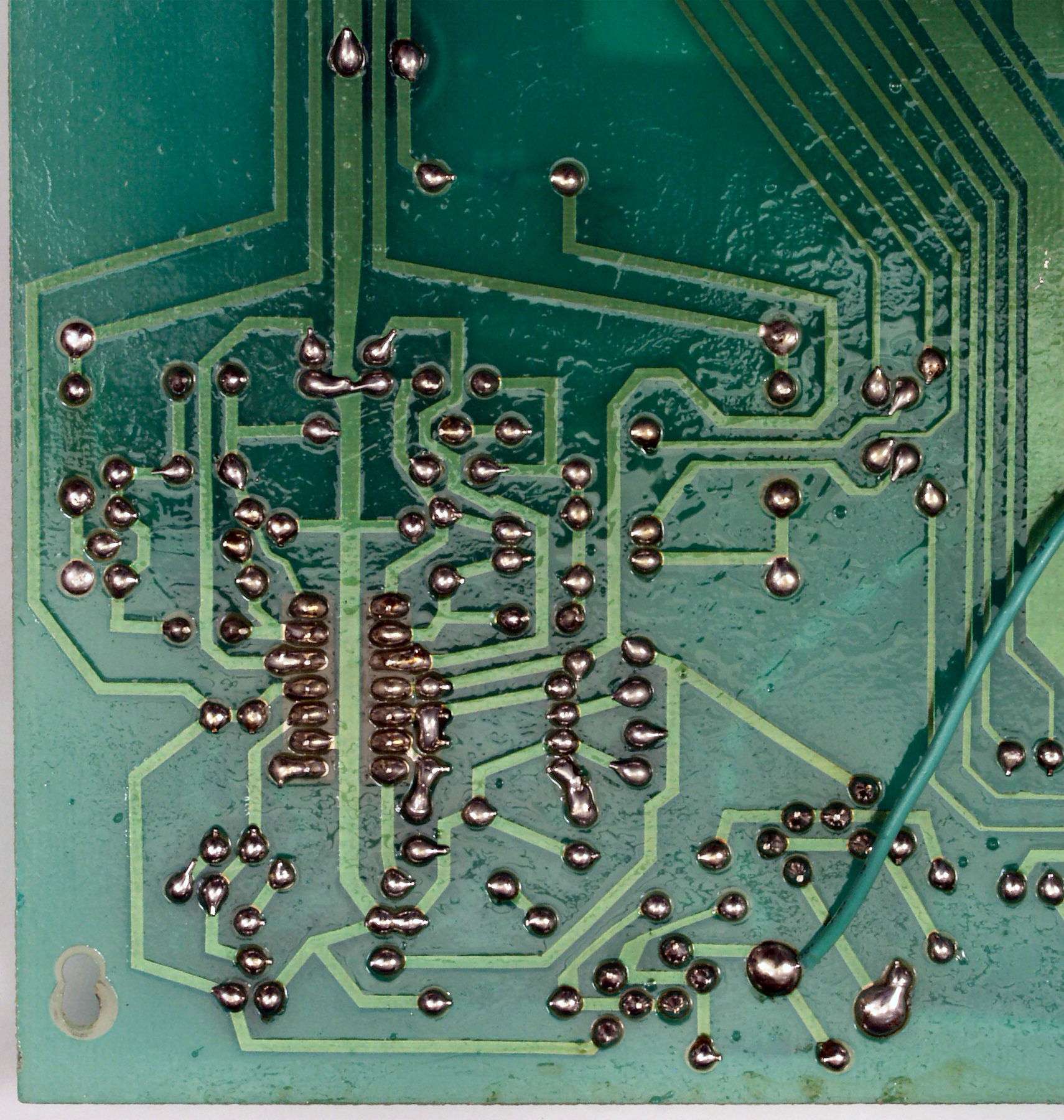 C3D. 修理(半田補正)後 MC基板裏、 半田を全部やり直す。