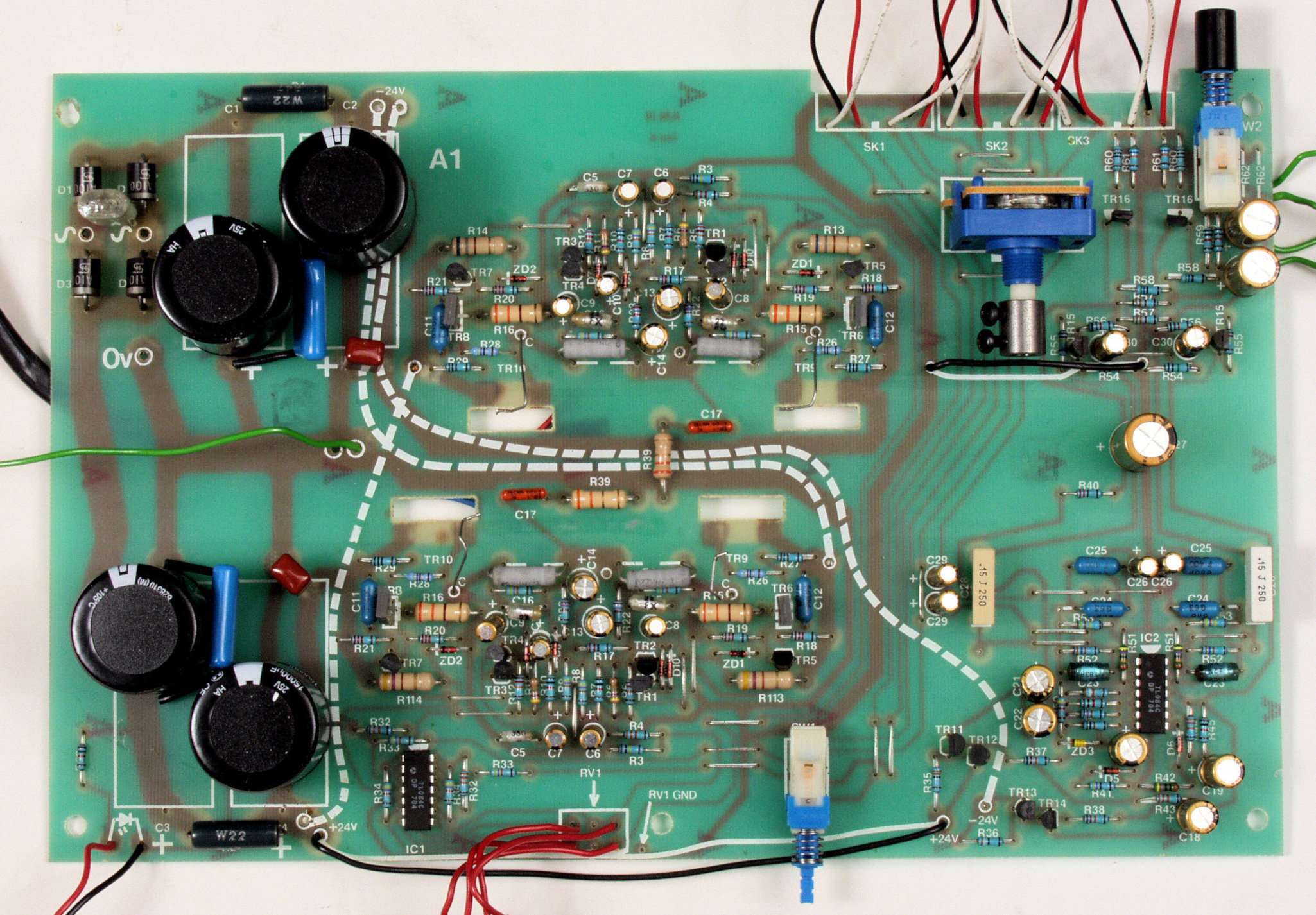 C12. 修理後 基板 電解コンデンサー31個、ダイオード4個、フイルムコンデンサー4個交換