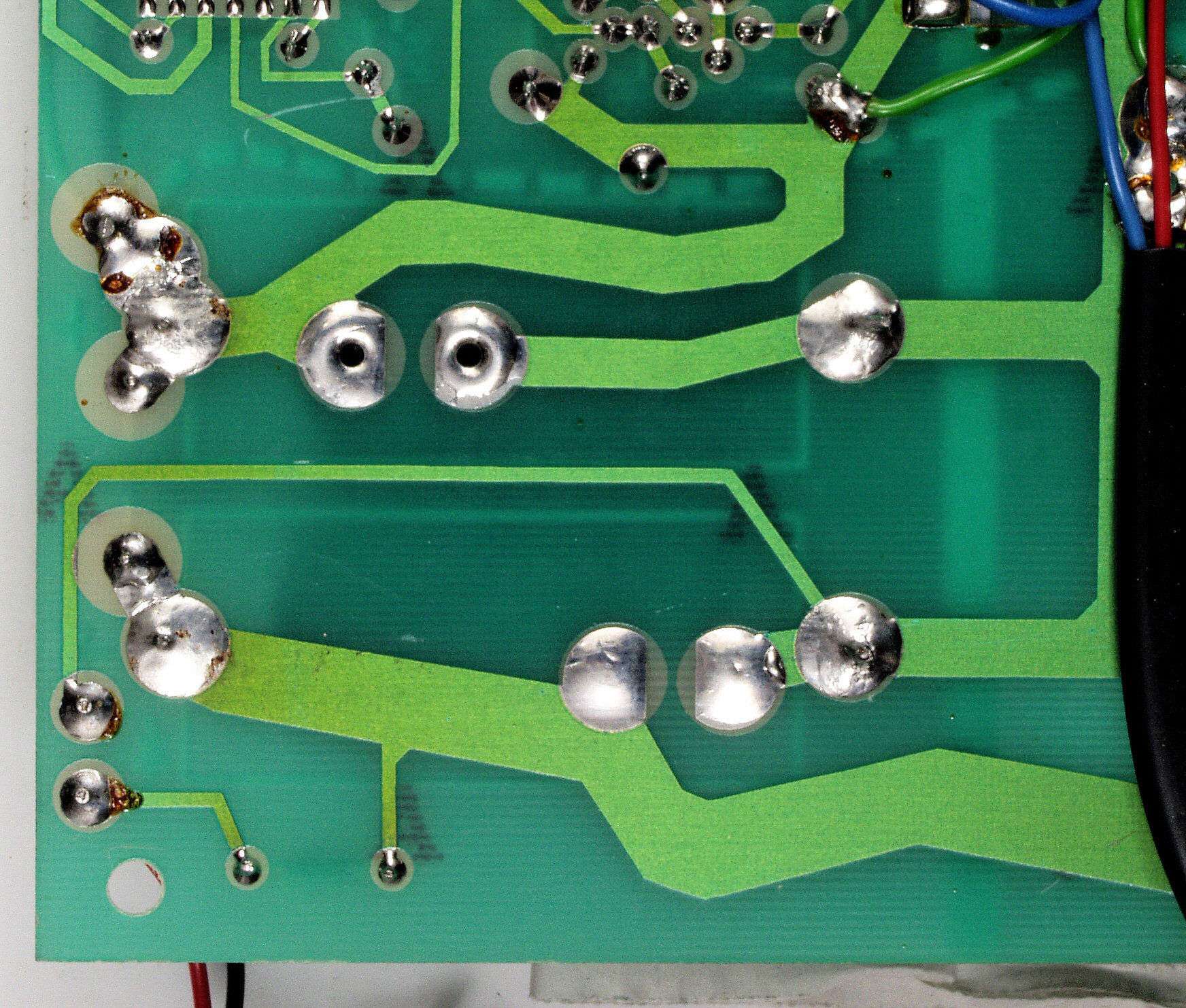 C94. 修理(半田補正)後 −側電源基板裏、 半田を全部やり直す。