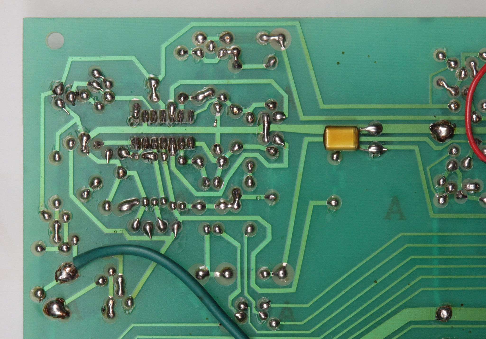 | C64. 修理(半田補正)後 MC基板裏、 半田を全部やり直す。 フイルムコンデンサー1個追加。 | ||||||||||||||||||||