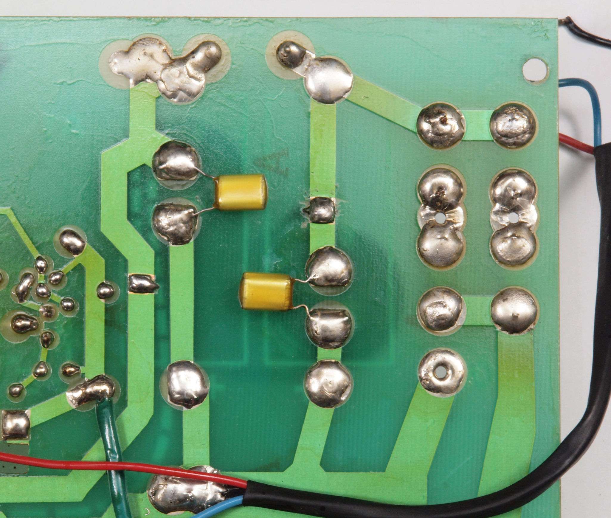 | C14. 修理(半田補正)後 基板裏、 半田を全部やり直す。フイルムコンデンサー5個追加。 | ||||||||||||||||||||